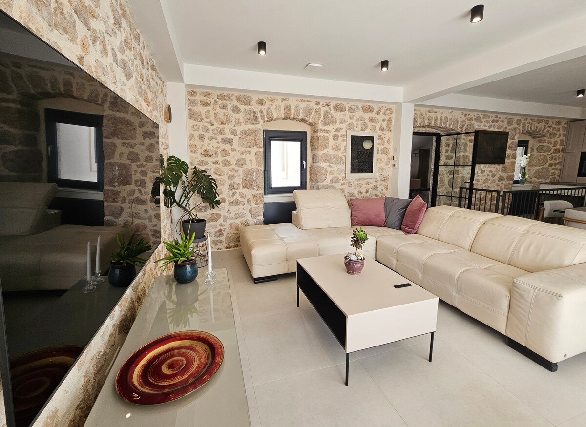 No alquiles esto si no quieres paz y tranquilidad. Cierra los ojos e imagina: auténtico pueblo antiguo, solo unas pocas personas viviendo, casas de piedra, sonido de grillos, naturaleza intacta, vista al mar Adriático y las islas, montaña Biokovo, pinos y olivos, sensación mediterránea. Llenamos la casa con calidez y energía positiva, pero no tenemos piscina ni jacuzzi, tenemos algo mejor: el mar Adriático, a solo 2 km de distancia. La casa se encuentra sobre Baska Voda, a 2 minutos en coche, a los pies de la montaña Biokovo con vistas increíbles.