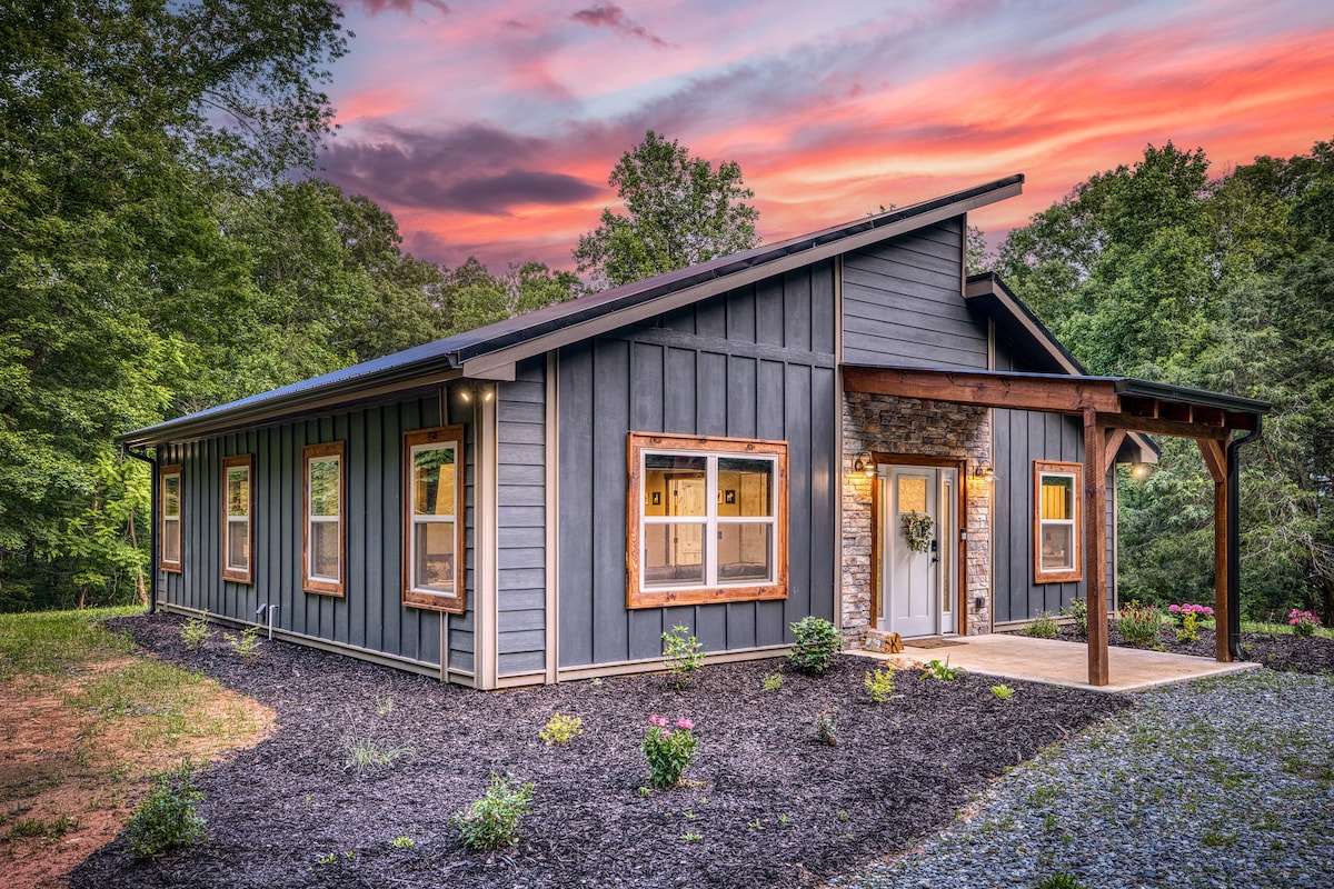 Entra en el lujoso oasis de 2 dormitorios y 2 baños, una propiedad pintoresca y tranquila en las montañas Blue Ridge. Una escapada relajante con impresionantes vistas a la montaña y al bosque, ubicada a 20 minutos de las ciudades de Blue Ridge, McCaysville y Murphy, con muchas atracciones y belleza natural. ✔ 2 dormitorios tamaño king ✔ Open Design Living ✔ Cocina totalmente equipada ✔ Jacuzzi ✔ Chimenea interior de leña ✔ Patio (chimenea de gas, TV, calefacción, parrilla, bar) Sistema ✔ de audio Sonos Wifi de ✔ alta velocidad ✔ Estacionamiento