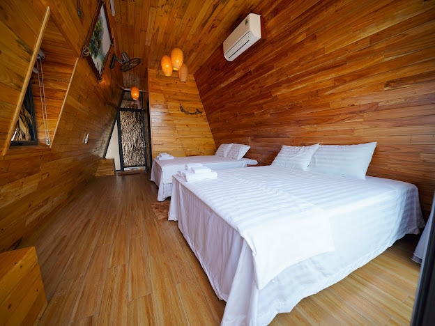 Beside our nice room for family, now we have 6 A-frame cabins with full amenities which located right next to a colorful garden. The green yard is where you can read books, take photos, relax or organize outdoor barbecue parties with friends. and relatives. Stepping out of that small yard is the poetic Son River and majestic limestone mountains in the distance. Breakfast is included and our staffs is present at all times to assist you throughout your stay.