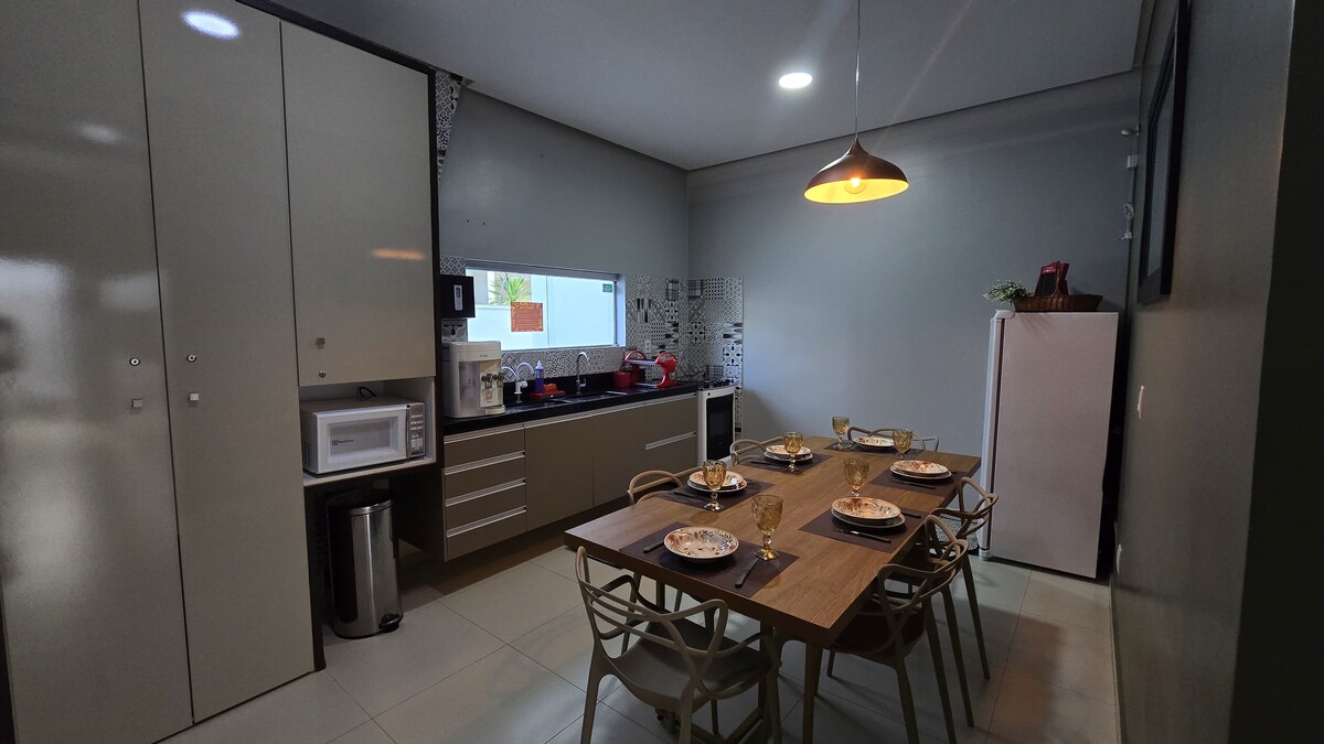 Disfrute de sus mejores momentos en una casa cerca de los principales puntos de la ciudad. A 3 minutos del Bosque dos Papagaios, a 5 minutos del centro comercial Garden y de la Facultad Catedral, a 9 minutos del centro y a 11 minutos del aeropuerto. Cerca de las playas de Gnomo, Polar, Caçari, Curupira. Casa con balcón, hamaca y loros «privados», visitantes habituales todas las mañanas y tardes. Cuenta con bañera de hidromasaje con agua caliente y mucha calidez.