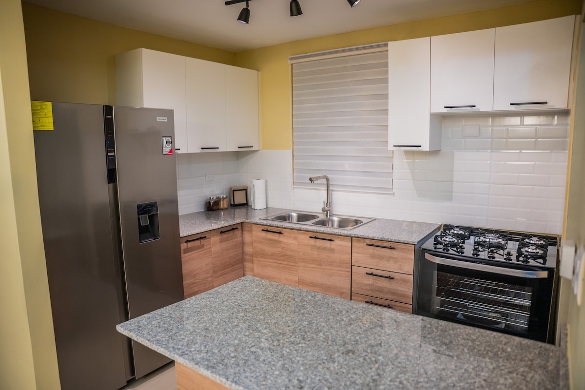 Hermoso y espacioso apartamento de 2 habitaciones completamente equipado para brindarle la mejor experiencia en Juan Dolio, cuenta con una sala acogedora con mueble amplio espectacular y televisión de 75" con equipo de sonido para disfrutar como una sala de cine de tus películas y series favoritas. También cuenta con colchones de alta gama versión americana que te garantizaran un buen descanso. Se encuentra de la playa a 2 minutos caminando. Tenemos una variedad de 8 juegos de mesas.
