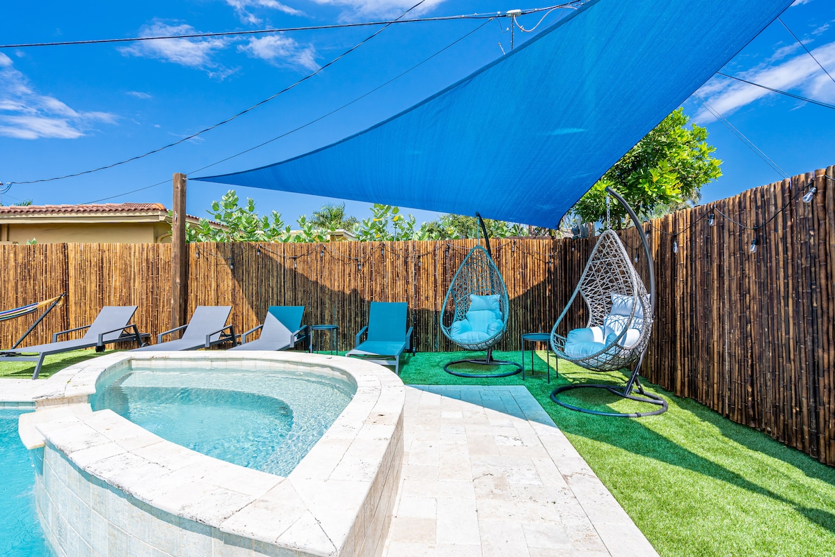 🌴Welcome to your canal-front retreat! Have some fun in the pool with the family, or enjoy some drinks in the hot tub and built in new wet bar. 🍹Our outdoor seating area has a TV 📺—perfect to watch your favorite Team play or for family movie night. 🍔🔥Relax under the gazebo with BBQ area, 💪🏋️♀️or work out in the outdoor gym. 🛌Comfortable bedrooms and two renovated bathrooms ensure a great stay. Just minutes from Pompano Beach’s beautiful shores and dining! 🏖️