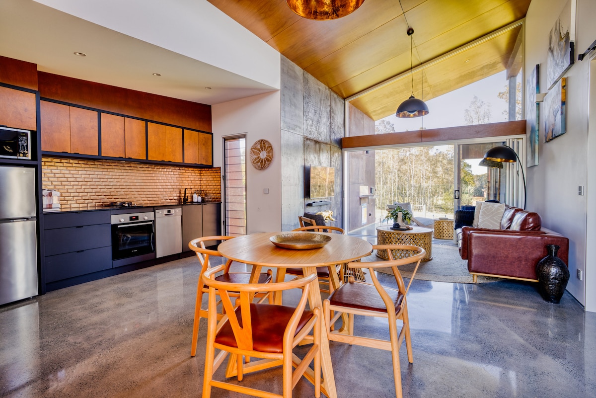Tawillah es un alojamiento exclusivo para una pareja con una cama tamaño king. Cuenta con unas vistas impresionantes a la campiña de Milton y a las cercanas montañas Budawang. El espacio cuenta con acabados de alta calidad en todas partes. El generoso baño tiene una bañera de piedra, ducha doble separada y calefacción por suelo radiante. En el exterior hay una gran terraza con tumbonas, chimenea y ducha al aire libre. Este hermoso alojamiento está a solo 2 minutos en coche de la ciudad de Milton y a 5 minutos de la playa de Mollymook.