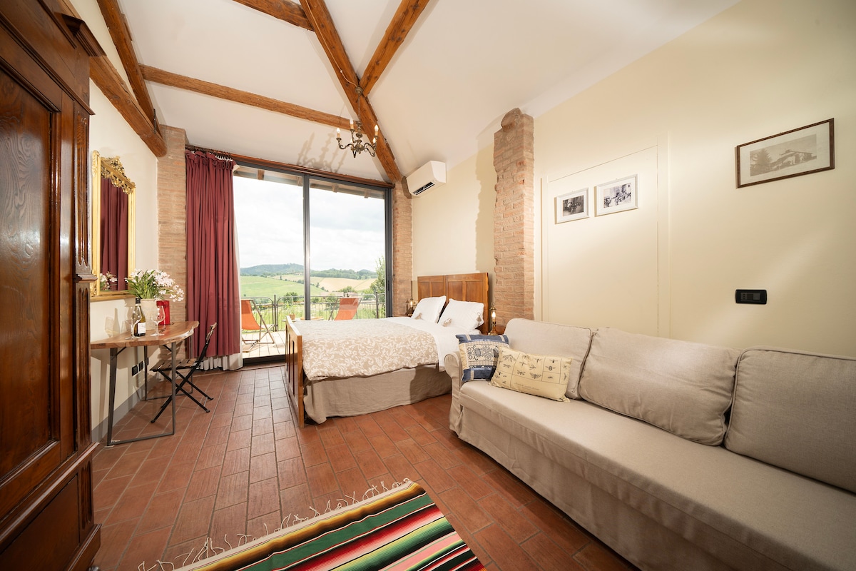 Ubicado en el verde de las Colinas Boloñesas, nuestro loft es una dependencia renovada con todas las comodidades, perfecta para una escapada relajante. Disfruta de las vistas al viñedo y al huerto familiar en un entorno ecológico, gracias a paneles solares y calefacción eléctrica. Dispone de: - Una cama doble - Baño con ducha y lavadora - Aparcamiento privado con estación de carga para coches eléctricos - Vistas al viñedo y al huerto ¡Un oasis de tranquilidad a pocos pasos de la ciudad!