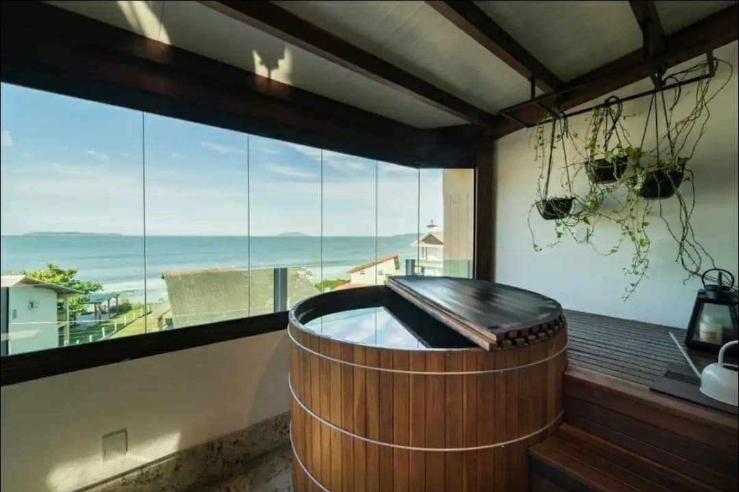 Casa Santorini cuenta con una increíble vista panorámica de la playa central de los petardos. LA PISCINA CLIMATIZADA, a 130 metros de la playa y la pasarela Ribeiro, la vista te proporcionará un amanecer inolvidable. * Área exterior con barbacoa; * Sala de estar con TV y medio baño, chimenea y sofá cama; * Cocina completa; PISO SUPERIOR; * 02 baño privado - vista DE petardos; * 02 dormitorios - baño social - bombas con vistas al mar; * Las 4 habitaciones tienen aire acondicionado; * 2 plazas de garaje cubiertas;