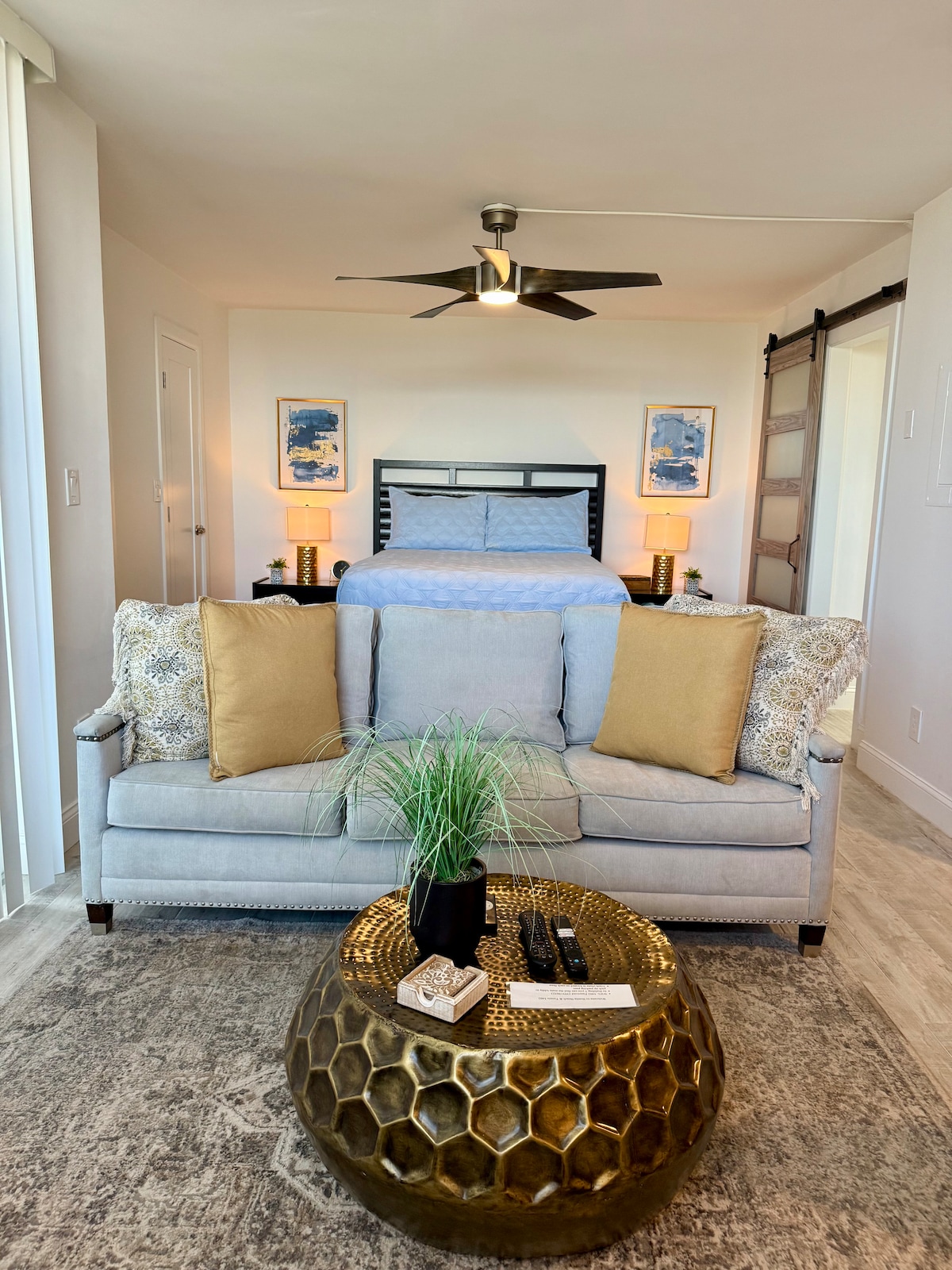 Hermoso estudio espacioso de nueva construcción en el centro de Bonita Springs, a 7 millas de la mundialmente famosa playa Barefoot y a solo 100 pasos del popular parque Riverside, donde se celebran muchos eventos y festivales. Este espacioso estudio es moderno, con un techo muy alto con vigas de madera a la vista, bien iluminado con puertas correderas gigantes, con una cocina de tamaño completo y una zona de patio completa. Perfecto para una pareja en una escapada o incluso para una sola persona que viaja por placer o trabajo. Limpio en todo momento.