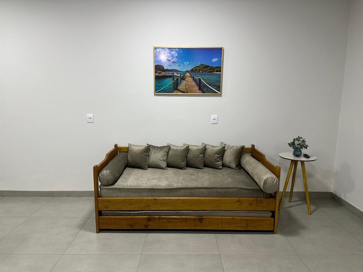 ¡Disfrute de una estancia inolvidable en Bonito, en el corazón de la ciudad! El Apê está situado en la mejor ubicación, a pocos pasos de los mejores restaurantes, tiendas y atracciones nocturnas. El espacio es acogedor y confortable, con una decoración regional que refleja la belleza y el encanto de Bonito. Ideal para disfrutar con familiares y amigos, el Apê ofrece toda la comodidad y privacidad que te mereces. Nos encanta recibir a la gente y brindar una experiencia memorable a nuestros huéspedes.