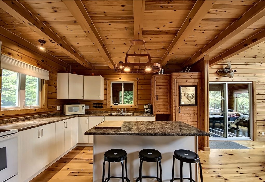 Bienvenido a nuestra nueva cabaña de madera hecha a mano ubicada en la impresionante isla de Rapides Des Joachims. Esta cabaña es la escapada perfecta para aquellos que buscan un retiro tranquilo rodeado de hermosos paisajes de montaña. La cabaña cuenta con una ducha de selva tropical, un loft con una cama tamaño queen y una cama individual, y un sofá cama doble en la planta principal. Mantente cómodo con una hermosa chimenea y disfruta cocinando en la cocina completa. Fácil acceso por las carreteras principales durante todo el año. Acceso directo al parque Zec y a todos sus senderos.