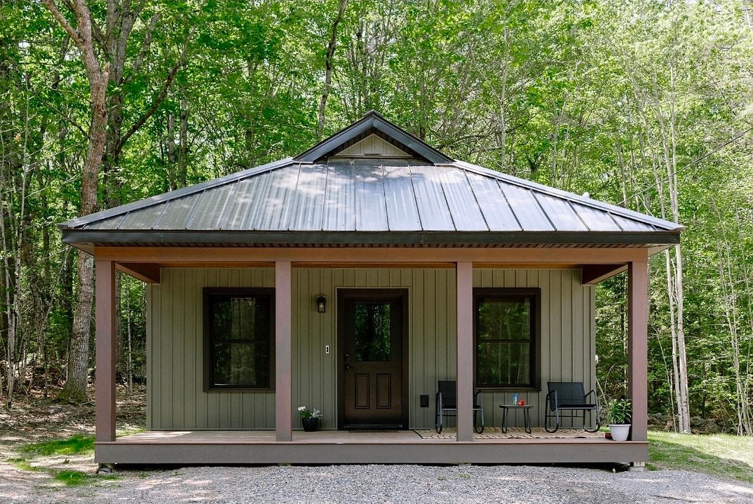 Stella es un apartamento tipo estudio estilo cabaña que admite mascotas en 100 acres de propiedad boscosa. ¡Disfruta de las comodidades de la propiedad (senderos, kayak, piragüismo, lanzamiento de hachas, horno de pizza a leña) y regresa a tu cómodo espacio con jacuzzi, electricidad, calefacción y fontanería! Stella se encuentra al inicio del terreno, encima de nuestro edificio de almacenamiento, tiene mucho aparcamiento y se puede llegar con vehículos de tracción simple. Este es un espacio nuevo, el exterior está sin terminar. ¡La bañera de hidromasaje es un salón Aqualiving para 3 personas!