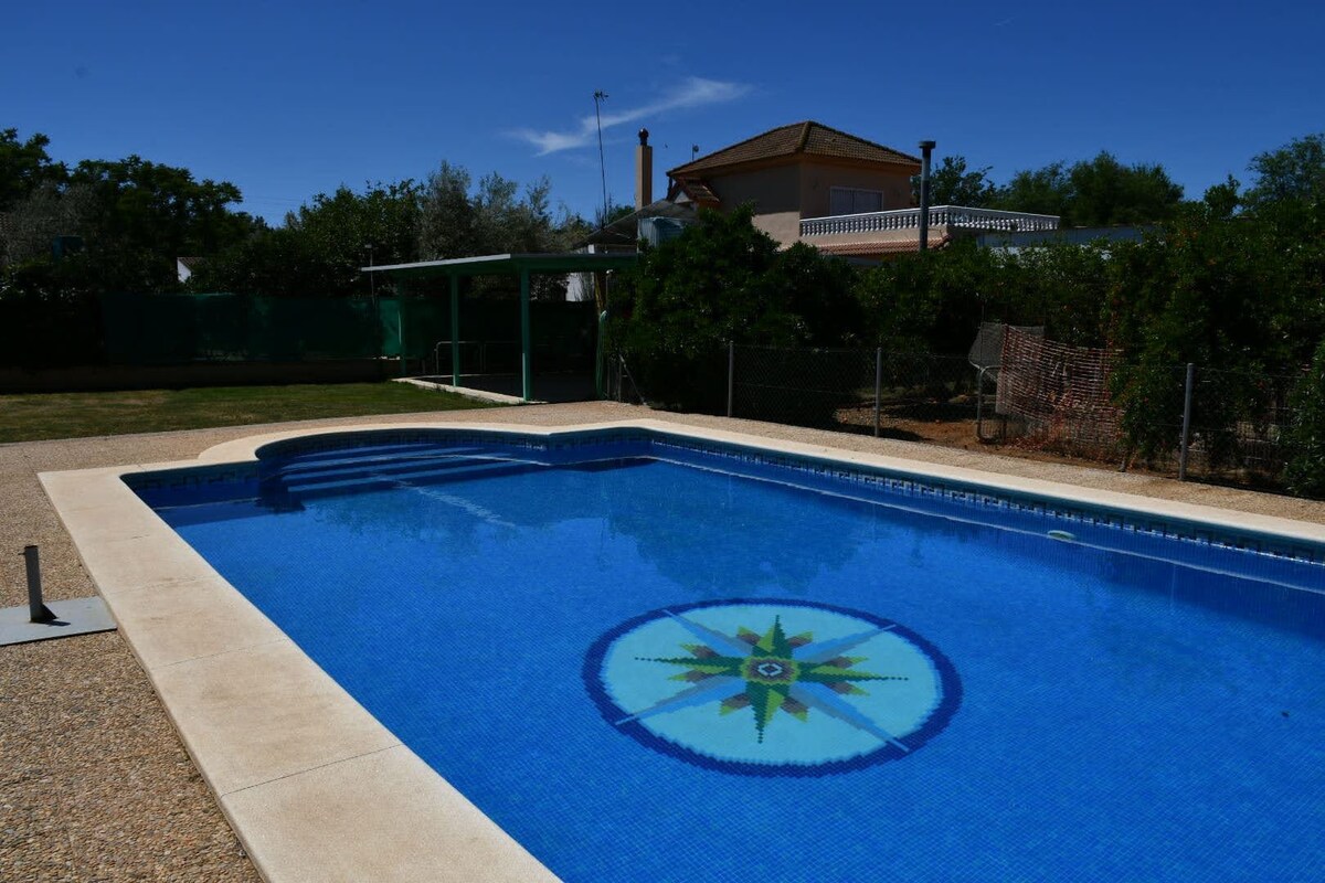 Chalet completamente único para los huéspedes a tan solo 20 min del aeropuerto de Sevilla donde destaca sus dimensiones, ya que cuenta con 5 dormitorios, 2 baños, uno con plato ducha y otro con bañera extra grande, amplio salón con chimenea y cocina totalmente equipada; dos grandes porches, piscina de grandes dimensiones, amplia zona de césped y jardín; aparcamiento para 5 coches, barbacoa. Es vuestro alojamiento para pasar momentos ideales tanto para familias como grupos.