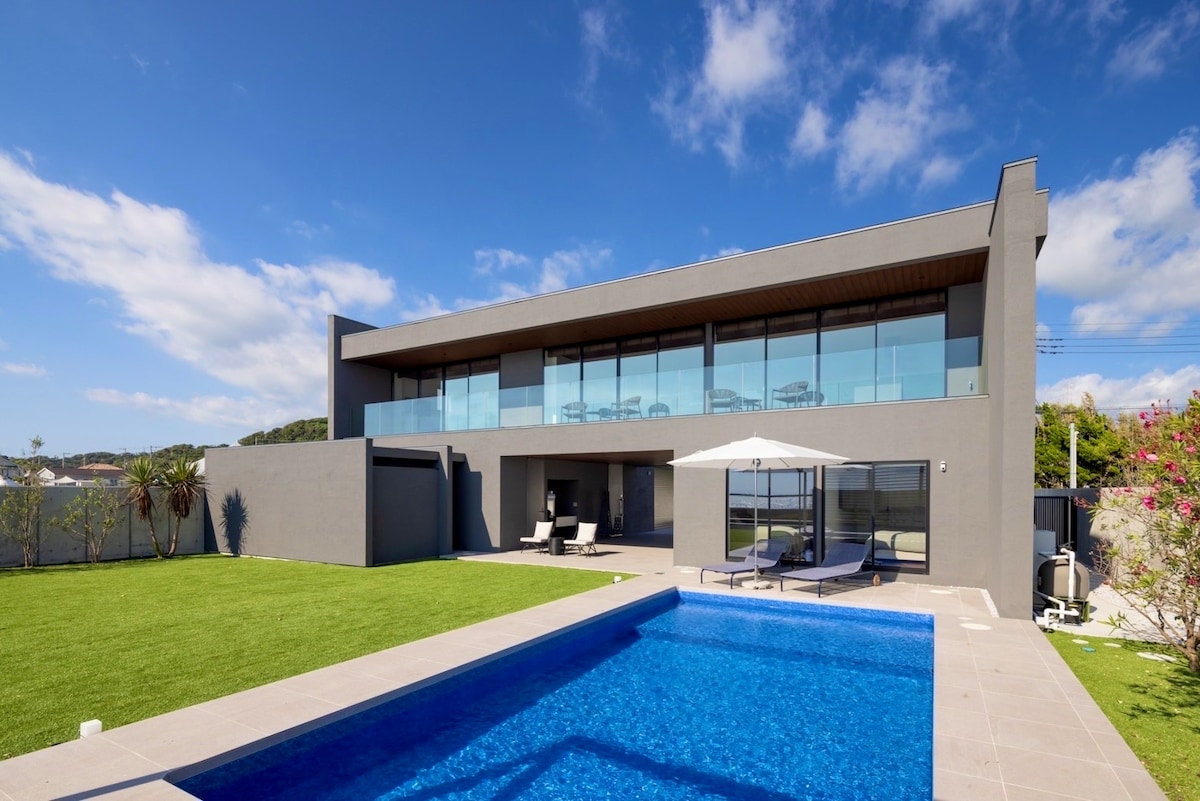 Aqua Villa con piscina, sauna y proyector compatible con 4K de 100 pulgadas a 5 minutos a pie del mar del parque de Fujitsu
