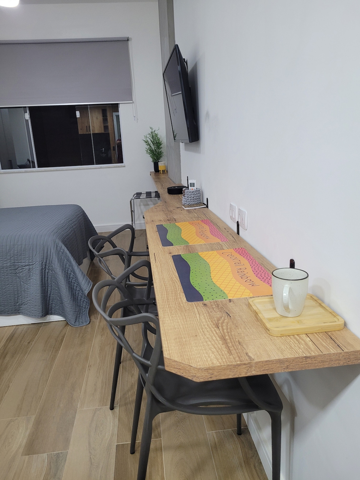 Elegante y acogedor ESTUDIO en Botafogo. La ubicación es excelente: edificio frente a la playa de Botafogo, a 100 metros del metro, Botafogo Praia Shopping (5 minutos a pie); restaurantes, carril bici; supermercado, bancos, etc. Fácil acceso a todos los lugares de interés de la ciudad. Cerradura digital con contraseña única
