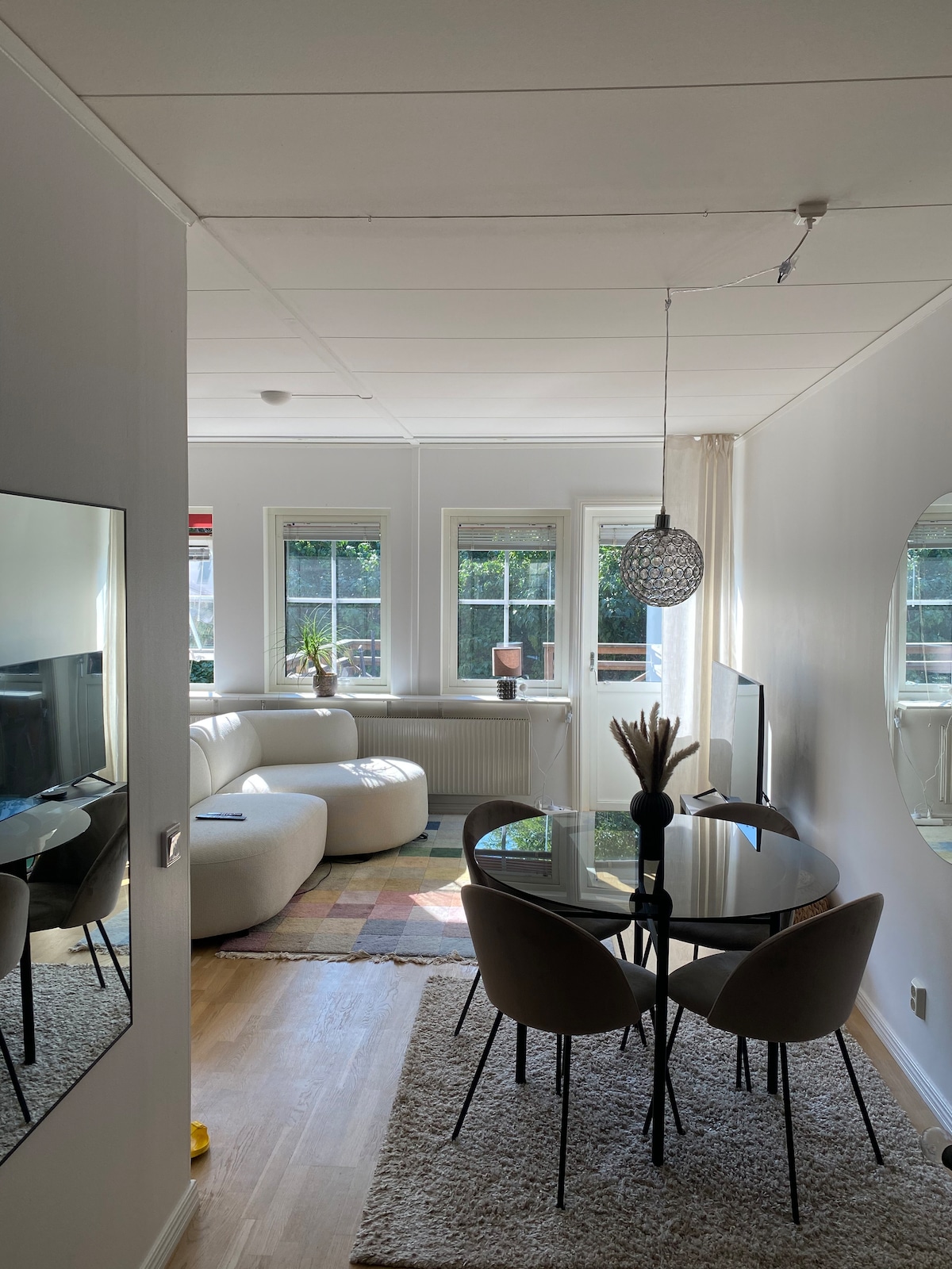 Alquilamos un apartamento de 1 dormitorio espacioso, luminoso y totalmente amueblado de 52 metros cuadrados en nuestra casa de los años 70. El apartamento tiene su propia entrada y está completamente renovado con materiales modernos y finos. Todo el apartamento está equipado con calefacción por suelo radiante bajo el suelo de hormigón gris claro que se extiende por todo el apartamento. Nueva cocina moderna de Ballingslöv con todo lo necesario para cocinar para una o más personas. El apartamento tiene un plano de planta abierta.