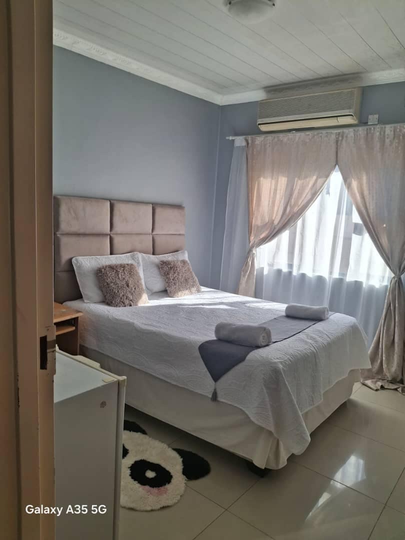 This is a Guest wing with own entrance.double bed and another room with a queen size bed and a single bed cooking facillities Free unlimited Wifi .air conditioned rooms. wash and dryer machine TV.shower /toilet swimming pool. My place is close to and centrally located in a secure complex. It is walking distance to Game City Shopping Center, 5 mins You’ll love my place because it is clean, secure, in a well managed complex and tucked away in a quiet complex with security. Has parking space .
