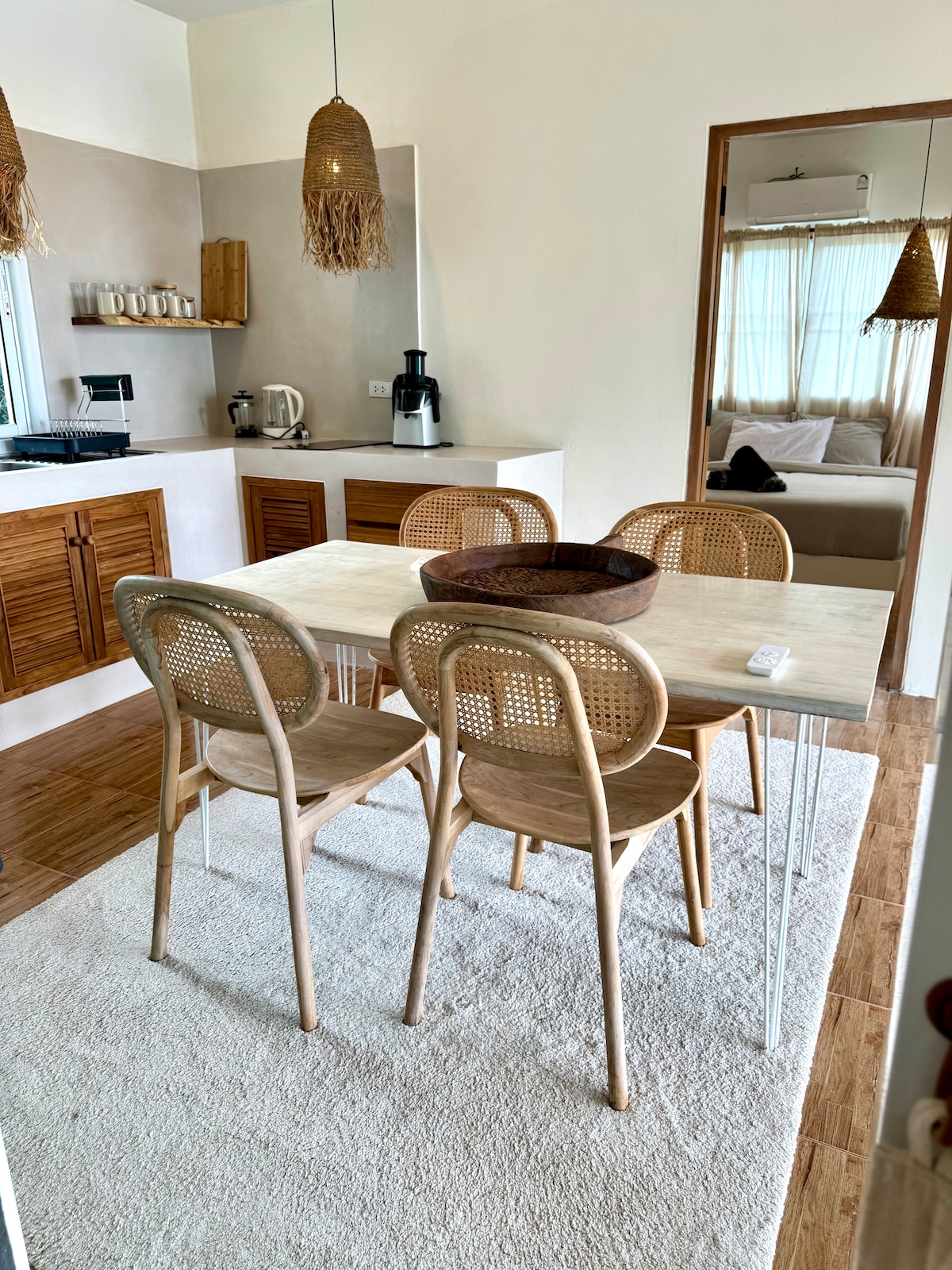 Kick back and relax in this calm, stylish space. Located steps from the beautiful shores of Chaloklum Bay, Koh Phangan, an area known for its rich local culture, fresh-off-the-boat seafood, crystal clear seawater and white sandy beach. This 1 bedroom top floor apartment comes with a private deck overlooking the blue seascape, a fully equipped kitchen, king bed, cozy living room, outdoor shower, indoor/outdoor dining and high-speed wifi. This newly renovated gem is what you've been looking for.