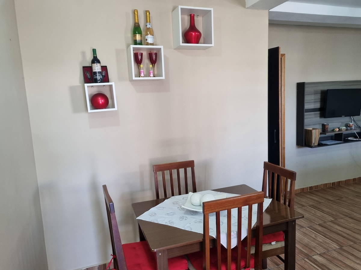 Casa con piscina, dentro de la casa hay 2 dormitorios dobles, 2 camas individuales y 2 camas individuales, 8 almohadas, 1 baño, sala de estar, balcón, despensa , cocina con todos los utensilios de cocina y una nevera pequeña, contiene una zona de láser con 1 nevera grande, barbacoa, piscina 1 inodoro con ducha caliente al aire libre, fregadero de cocina, 5 mesas y 12 sillas, sillones de plástico para usar en el área de láser, plancha eléctrica, ventilador.