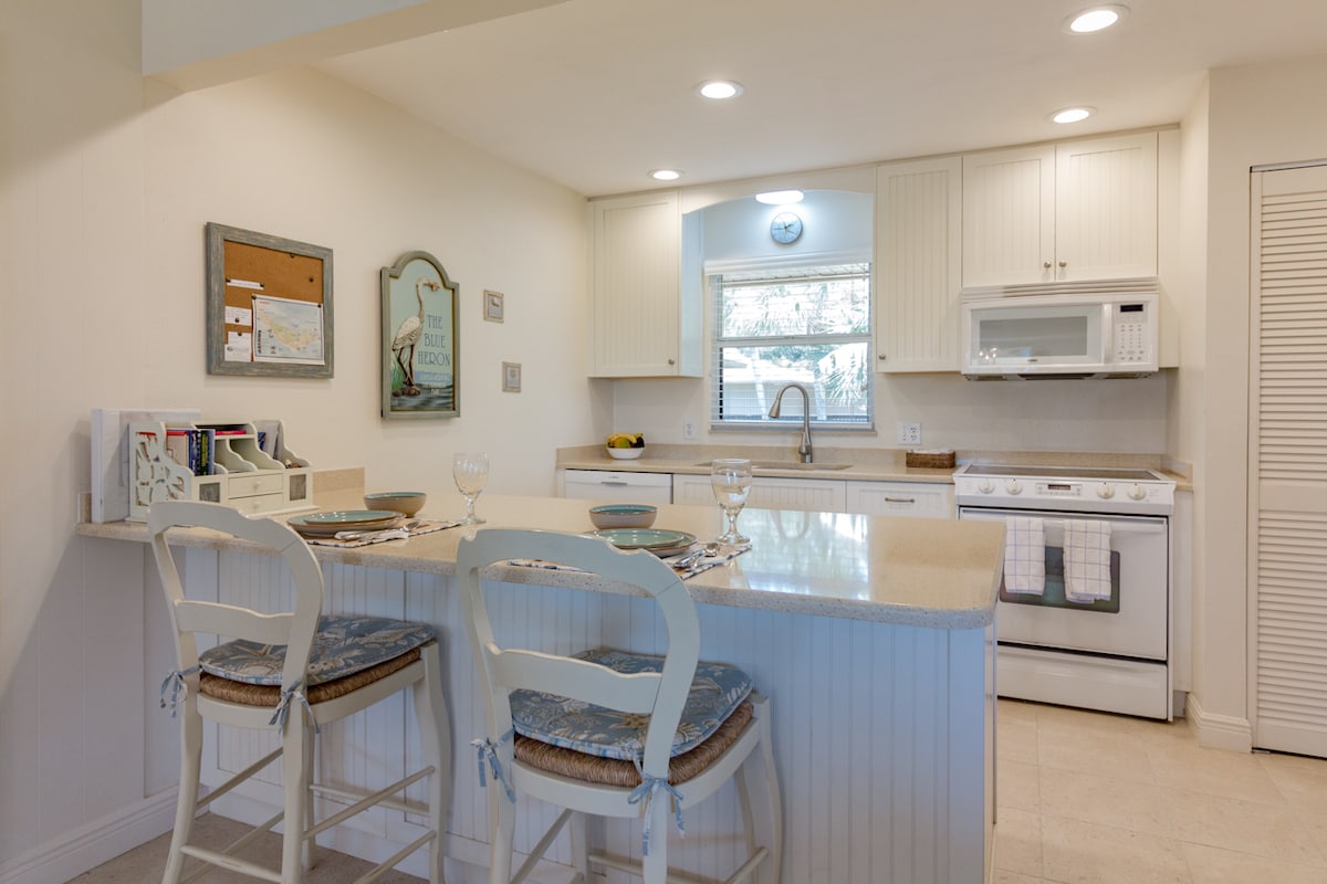 Ven a ser nuestro huésped para disfrutar de tu visita a la mundialmente famosa isla de Sanibel. Este condominio de estilo adosado recientemente renovado y bellamente decorado de dos dormitorios y dos baños y medio tiene capacidad para 6 personas y está a siete minutos a pie de la hermosa playa del Golfo. El West End de Sanibel permite a los amantes de la playa pasear por kilómetros rodeados de naturaleza. Hay vastas extensiones de playa virgen donde no se puede ver nada artificial.