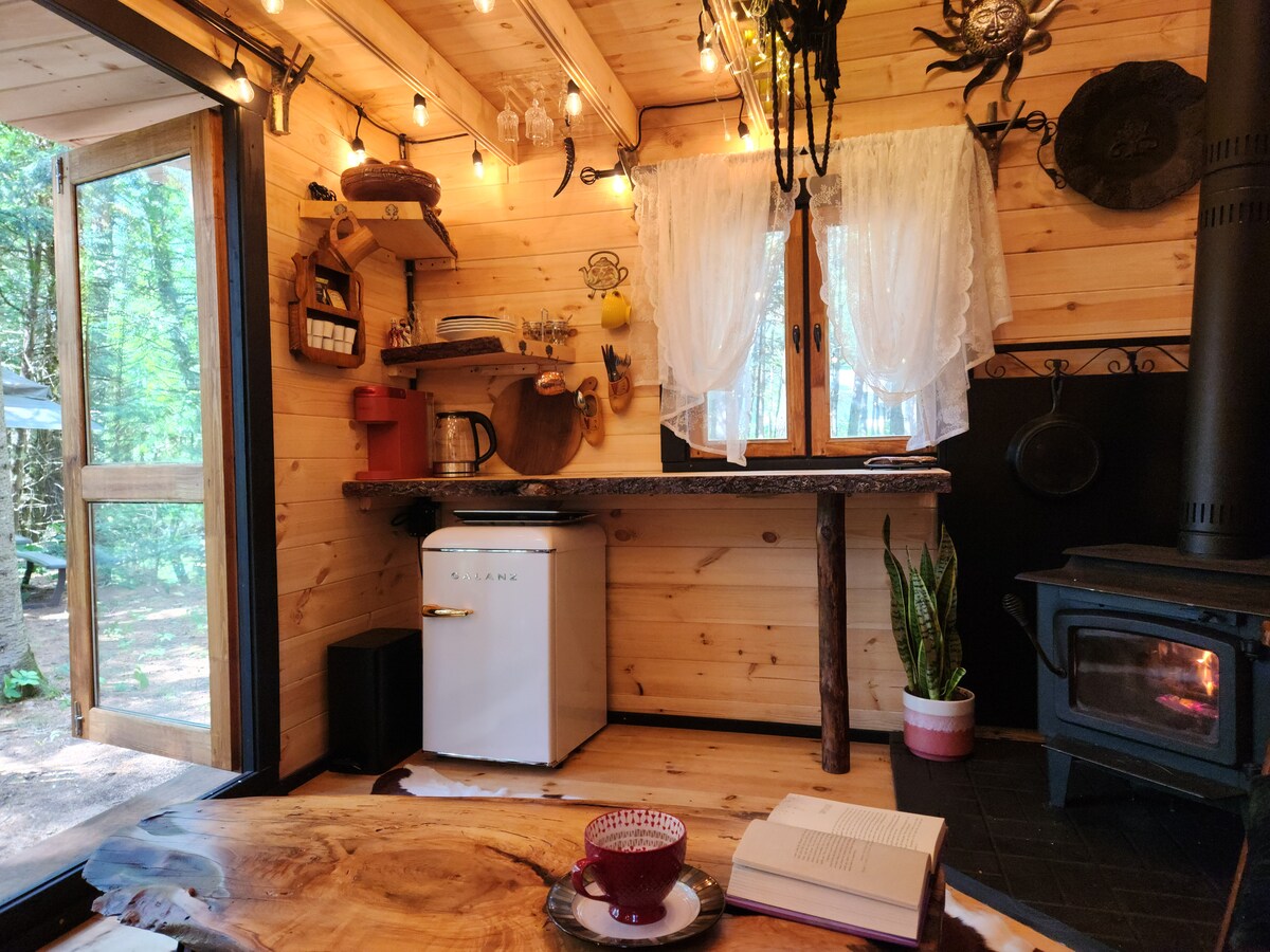 Acogedora cabaña con jacuzzi, sauna y estudio de yoga caliente.