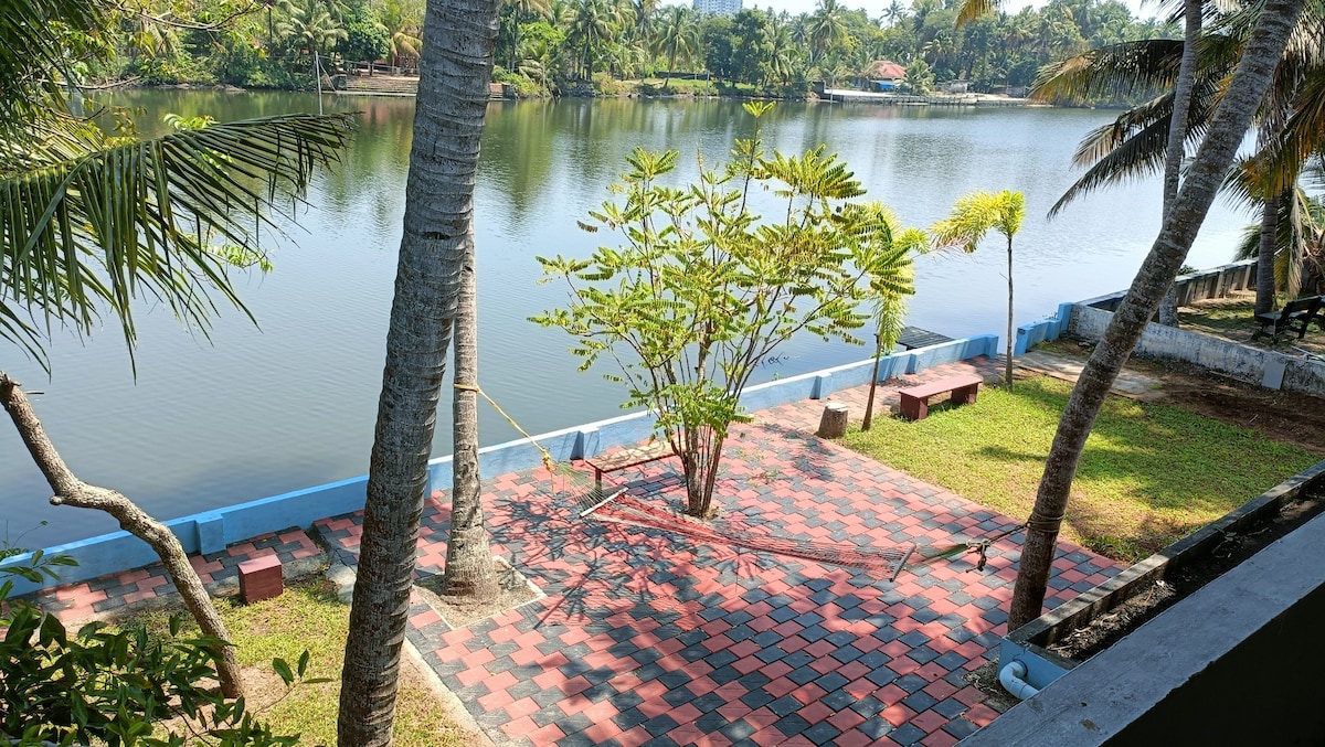 ¡Brindemos por el retiro ideal frente al lago Vembanad que es tuyo! Nuestra impresionante villa frente al mar, escondida a lo largo de la tranquila costa, ofrece lo máximo en comodidad y relajación. Nuestra escapada costera es el lugar perfecto, ya sea que quieras participar en una variedad de actividades al aire libre o simplemente relajarte con el sonido de las olas. Disfruta de una escapada romántica junto al mar o de una reunión con familiares y amigos en nuestra acogedora casa de campo junto al agua. *Por favor, trae una identificación original a tu llegada.