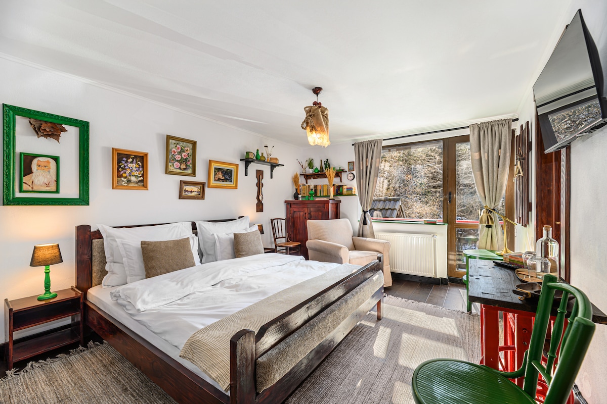De lo contrario, Bran Chalet se encuentra en Bran y ofrece 2 chalets con una vista especial de los alrededores, desde la amplia sala de estar, terraza, acceso gratuito a WiFi y agua desde su propio manantial. Con vistas a las montañas, incluye 4 dormitorios con baño privado, balcón, amplia sala de estar con comedor, TV de alta definición, una cocina pequeña equipada con nevera y cafetera espresso (el café está en la casa), así como terraza. Para mayor comodidad, la propiedad ofrece toallas, gorras, pantuflas y sábanas.