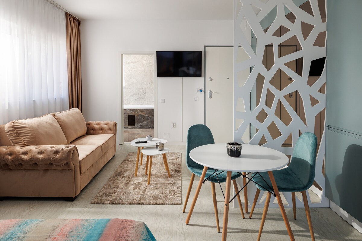 Unwind in this calm and stylish studio featuring a beautiful shared garden, ideal for moments of true relaxation. Set in the upper part of Brașov’s city center, near the Old Town, the apartment is just a 15-minute walk from the Black Church, Council Square, Rope Street, the First Romanian School, and Tâmpa Mountain. With convenient on-site parking, this peaceful retreat is perfect for recharging and enjoying fresh mountain air.