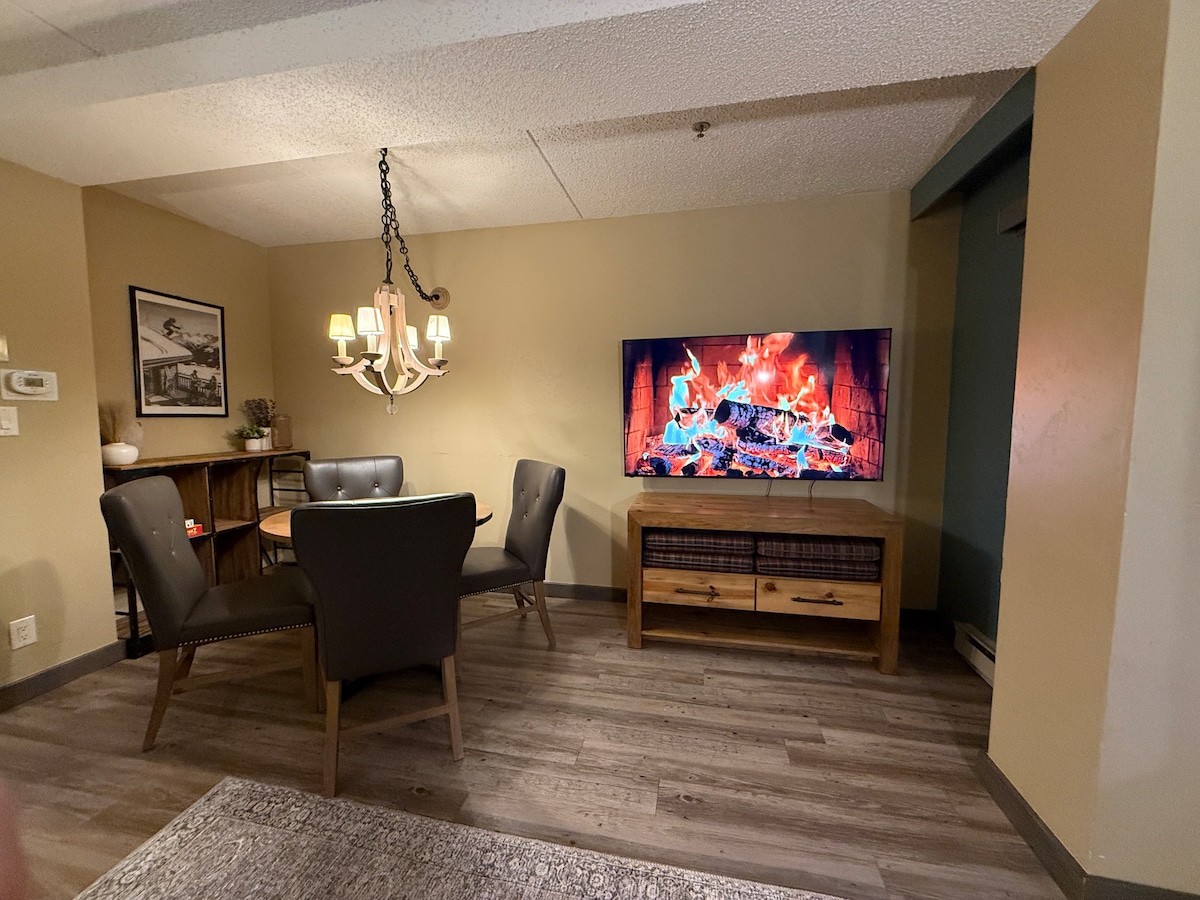 Ten en cuenta que la llegada anticipada/salida después de la hora establecida no está disponible. Relájate en este espacio tranquilo y elegante. Nuestro cálido y acogedor condominio está ubicado en una zona tranquila pero conveniente muy cerca de los ascensores y la ciudad. Acurrúcate hasta la chimenea de gas, relájate en la terraza cubierta y las sillas Adirondak con café o un coctel. Utiliza las batas proporcionadas para dar un paseo fácil hasta la piscina y las bañeras de hidromasaje después de un día de esquí o senderismo. El lujo de montaña se encuentra a solo un clic de distancia.