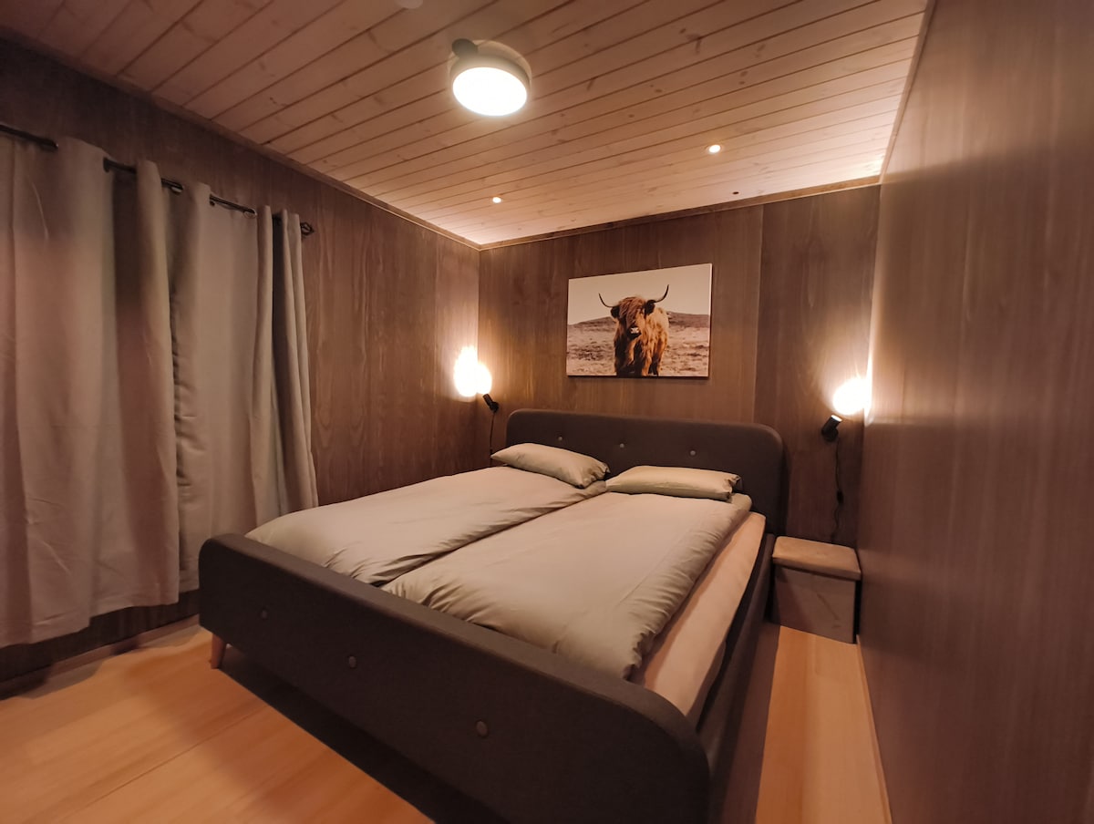 Bienvenido a nuestra acogedora casa de huéspedes, ubicada en el idílico jardín de nuestra casa. Aquí vivimos en la naturaleza, rodeados de paz y vistas infinitas. ¡Nos hace mucha ilusión compartir este lugar sereno contigo! Es perfecto para aquellos que aprecian la autenticidad. ¡Pequeña, pero muy acogedora! Disfruta de una mañana tranquila, camina descalzo por el jardín, pasa el día de excursión, relájate en la hamaca o haz una barbacoa junto a la fogata. El sol brilla desde la mañana hasta la noche y, cuando no, ¡puedes acurrucarte junto a la chimenea crepitante!