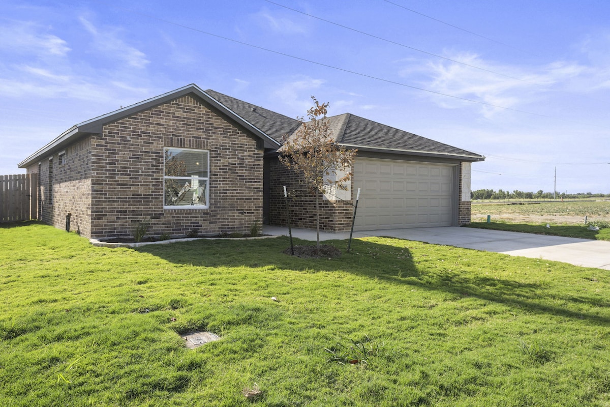 Located in the country, this is the perfect place to take the family for a weekend getaway. It’s peaceful and has plenty of room for the whole family. Beautiful sunset views. The House Built in 2023, it is fully furnished with a washer and dryer available for use. The kitchen has a stove, oven, refrigerator/freezer, and microwave. There are 2 bedrooms with a queen bed in each and a sleeper sofa in the living room. Location 2 miles from the small town of Lott, 30 miles from Waco and Temple