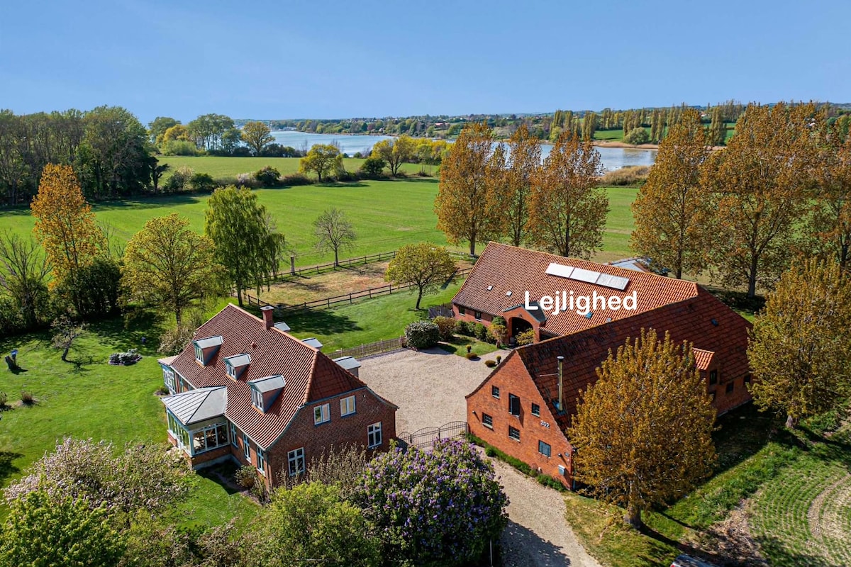 Apartamento independiente de 90 m2 en la planta baja con entrada privada. Desde la terraza hay una vista de 180 grados sobre el Pequeño Cinturón. Cuatro camas + 2 niños en el suelo. Amplia sala de estar con capacidad para 2 personas, dormitorio, baño con sauna, cocina con todas las comodidades + lavadora y secadora. Internet gratuito (Netflix) y canales de televisión. Se puede comprar vino, cerveza y agua. Aparcamiento gratuito justo fuera de la puerta. El apartamento está en la parte inferior de una encantadora villa de 220 m2, que se encuentra con vistas al agua de 180 grados sobre el Little Belt