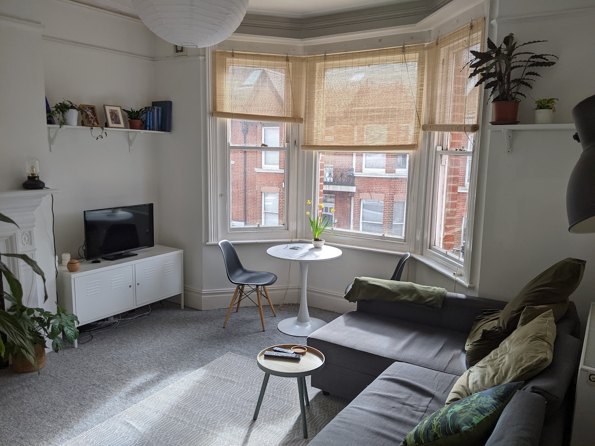 Nuestro apartamento luminoso y acogedor, en el primer piso, de 1 dormitorio en Seven Dials. ¡A solo seis minutos a pie de la estación de tren de Brighton! Ideal para viajeros o parejas en estadías. Los pubs, cafeterías y tiendas más queridos de la ciudad están a la vuelta de la esquina y las famosas Laines de Brighton están a pocos minutos a pie. El paseo marítimo también está a solo 15 minutos a pie y el centro de la ciudad a 10 minutos a pie. Ducha, sala de estar y cocina de planta abierta, dormitorio tamaño king. Wifi y televisores inteligentes tanto en el salón como en el dormitorio con Netflix.