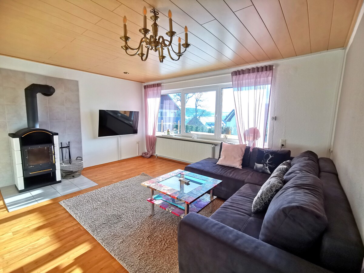 Ein ruhiges, aber dennoch modern ausgestattetes Ferienhaus /Wohnung Kleine Besonderheiten ein Deckenventilator, ein Gaskochfeld, Infrarotheizung im Badezimmer usw. sind vorhanden. Ein toller Ausblick in die Natur, umgeben von Wanderwegen und nicht unweit dem schönen Willingen, wo auch Partygäste auf Ihre Kosten kommen. Einen Balkon sowie eine Terrasse/ Vorgarten dienen dem Genuss des Abendrots. Auf dem Gelände sind Lampen elektrisch mit der Fernbedienung zu bedienen.