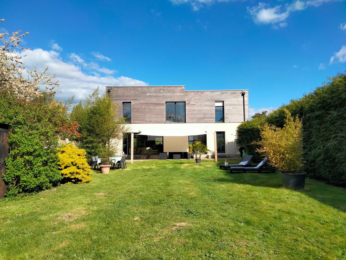 El alojamiento fue construido en 2020. Es totalmente independiente. Esta pequeña casa ofrece un patio exterior, una cocina equipada, una sala de estar con sofá cama (160 cm) y un televisor. Habitación con vestidor y una cama de 160 cm. Cuarto de baño con lavabo doble, ducha e inodoro. Wifi disponible. Estamos a 10 minutos en coche de Angers. Estaremos presentes para recomendarte los mejores planes. El tranvía, un supermercado y estacionamientos están cerca.