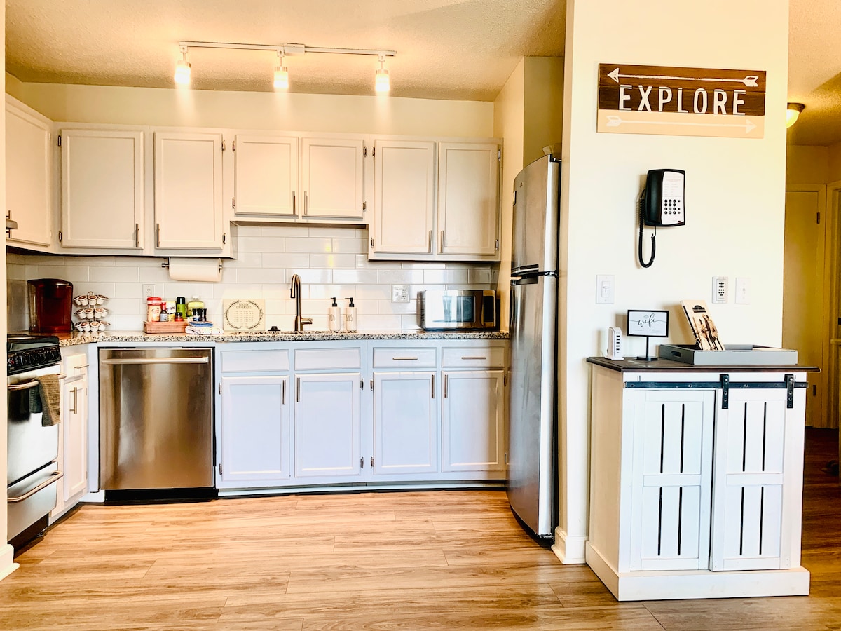 Este acogedor apartamento es el lugar perfecto para experimentar la belleza de la región de las Tierras Altas de los Apalaches. Esta unidad tiene dormitorios, cada uno con su baño; se ha actualizado completamente con televisores de pantalla plana, colchones de alta gama y muebles nuevos. Prepara comidas en la cocina totalmente abastecida. El primer dormitorio cuenta con un baño completo y una cama con una base ajustable. El segundo dormitorio también tiene un baño completo, un ventilador de techo, un televisor de pantalla plana y un colchón de espuma viscoelástica tamaño queen.