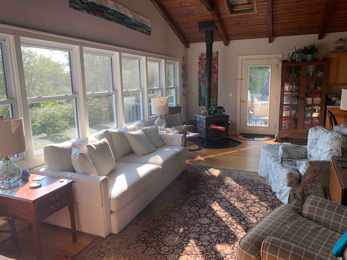 2 dormitorios/1 baño. Cabaña de un nivel ubicada en 8,5 acres rodeada de árboles. Internet wifi con servicios de streaming, TV inteligente de 65 pulgadas, Netflix, Hulu, libros y juegos de mesa. Se proporcionan té, café y cafetera. No hay gastos de limpieza, así que, por favor, mantén la limpieza y el orden. Woodland Cottage se mantiene fresca y limpia; tiene capacidad para un máximo de 6 personas cómodamente. Damos la bienvenida a todos, sean de donde sean. Estamos a 8 minutos de la I-26 y a 15 minutos de la I-81 (a través de la I-26).