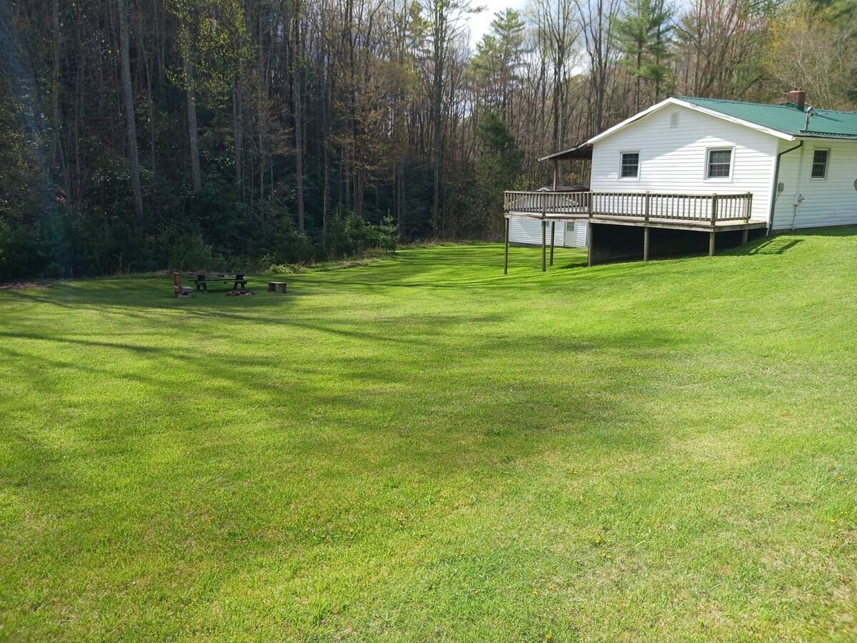 Cerca de Boone/Appalachian State y Valle Crucis, la cabaña del barrio se encuentra en 100 acres con rutas de senderismo privadas, chimenea y casa del árbol. Ofrece dos espacios habitables: la casa principal, con capacidad para 6 personas y una casa rodante (encima del garaje), tiene capacidad para 2-3 personas. Nuestra casa cuenta con una decoración de artistas locales y artesanos de Southern Highland, así como cable y wifi, cerca de pesca, tubing y senderismo, así como galerías, The Mast Store y restaurantes. Descansa, relájate y rejuvenezca en este entorno tranquilo.