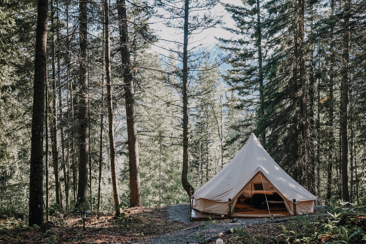 Escápate a las hermosas Montañas Rocosas y disfruta de la simplicidad de nuestra escapada de glamping. Experimenta la paz y la serenidad de la vida en la montaña, bellamente escondida en el bosque, pero fácilmente accesible desde la autopista Trans Canada. En el corazón de 6 parques nacionales, es fácil disfrutar de todo lo que Golden ofrece con un sinfín de senderos para bicicletas, senderismo, surf de remo y más.