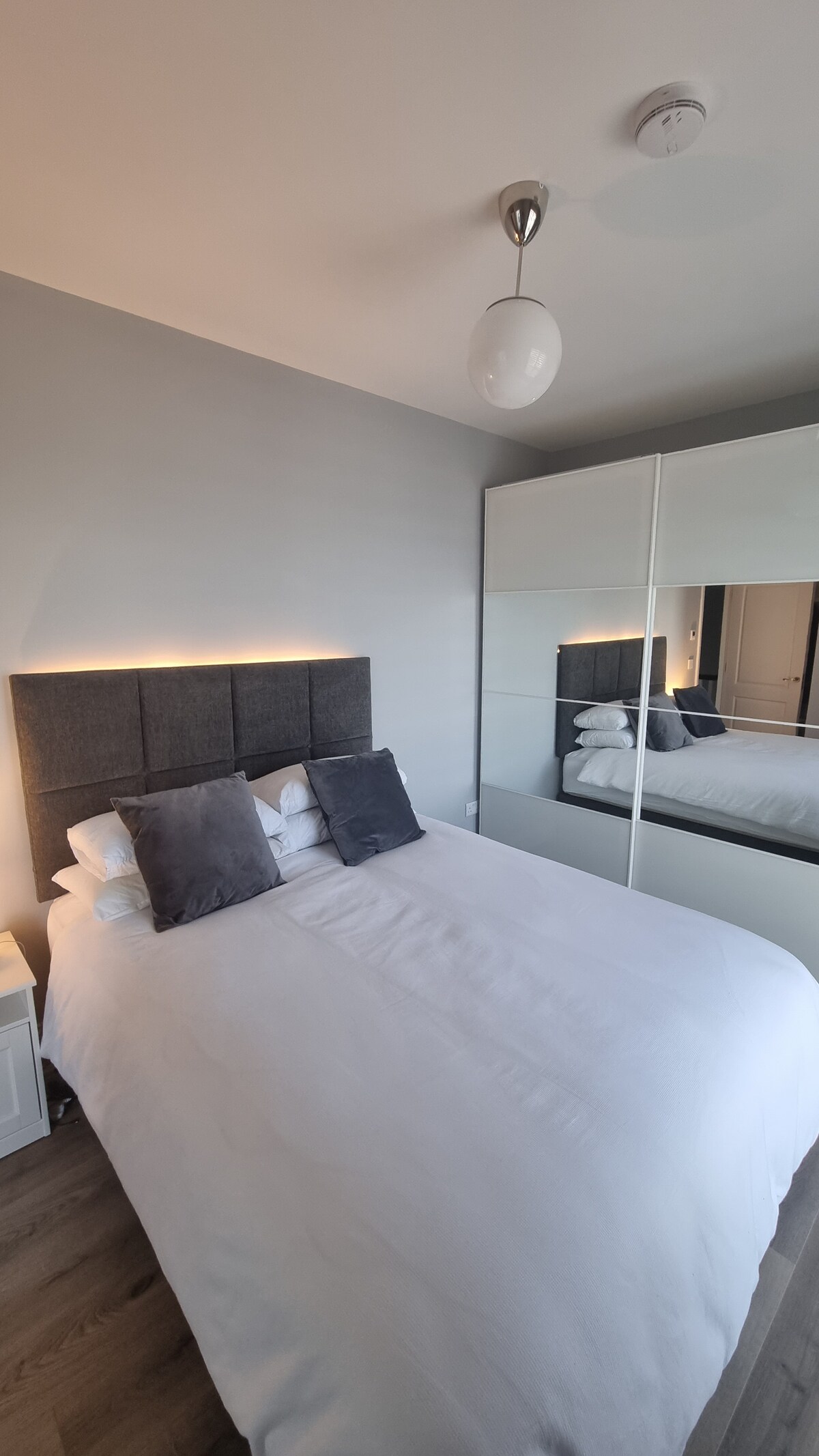 A beautiful traditional stone built barn converted into a contemporary/industrial/rustic living space with quirky touches. Located in the idyllic foothills of the Wicklow Mountains, on the Wicklow Way, it features an open plan kitchen/living/dining space, a mezzanine bedroom and a spacious wet room. An extension offers an additional boot room/rustic bathroom/loo and paved courtyard. The grounds are comprised of upper and lower lawns set on half an acre. A country pub is within walking distance.