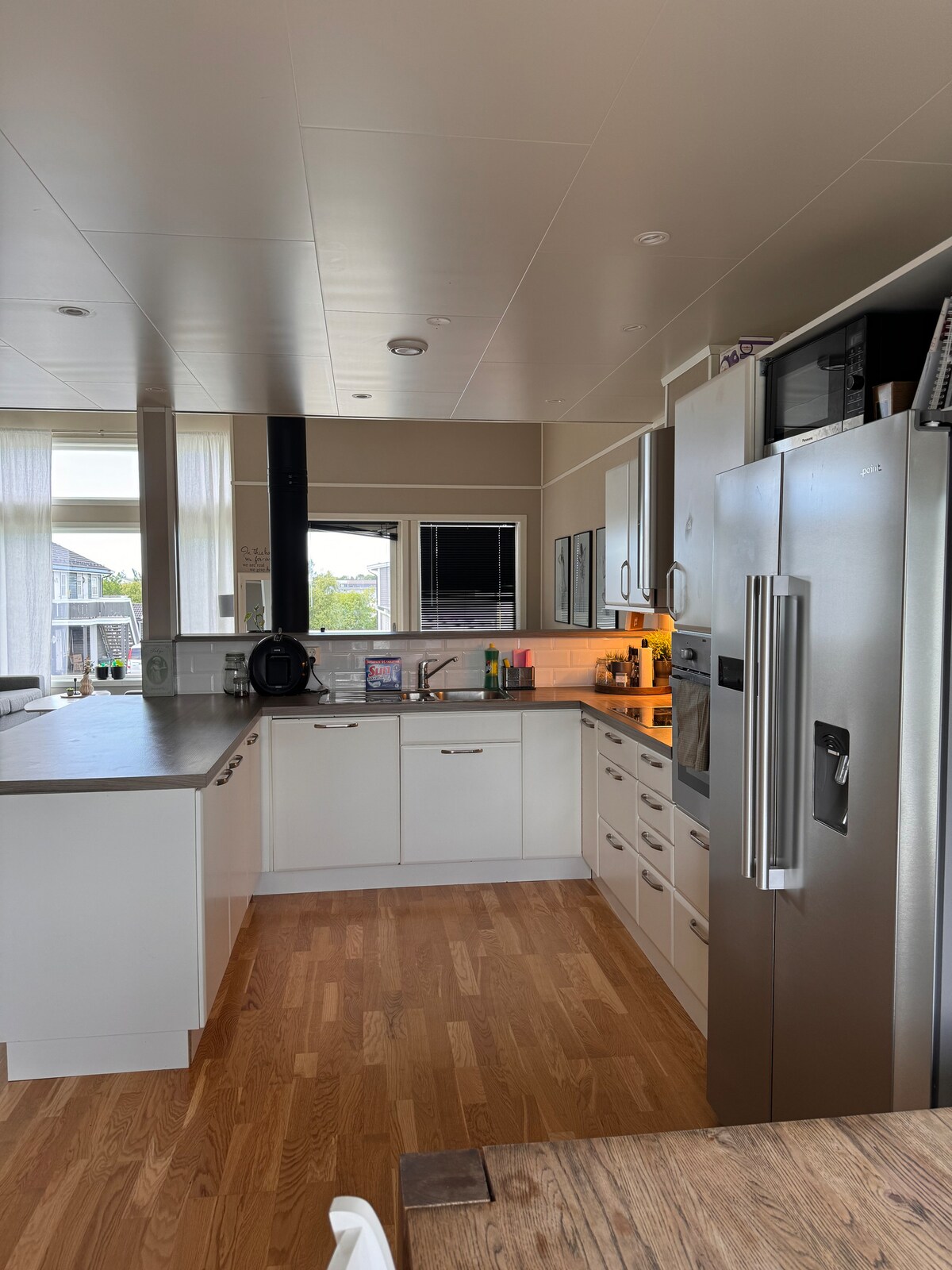 3 dormitorios. 1 baño. Cuarto de lavado. Construido en 2013. A 1,8 km del centro de la ciudad. Tenemos un sofá cama doble en la sala de estar que se puede usar como espacio para dormir. Sartén para barbacoa y bonito patio en el jardín. Porche arriba con vistas al atardecer. Cargador de coche eléctrico.