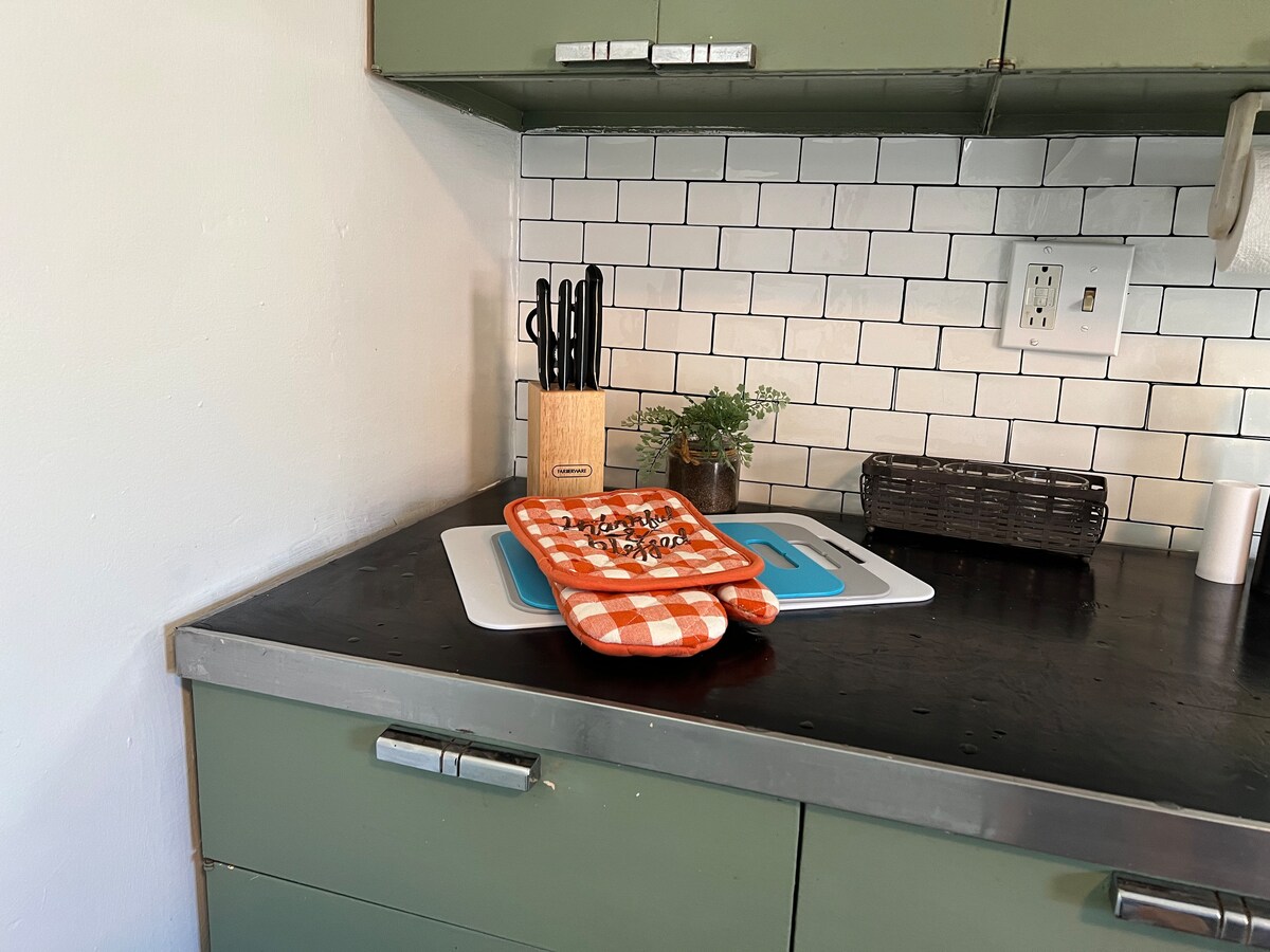 Nuestra familia trabajó para restaurar este alojamiento de estilo artístico y artesanal con la esperanza de que sea un lugar tranquilo para que los huéspedes se queden y disfruten de tiempo de calidad juntos. Esperamos que hagas recuerdos jugando al tejo, juegos de mesa o videojuegos retro; escapando hasta el caprichoso loft al que se accede a través de una escalera de caracol para leer un buen libro; preparar una comida juntos en la cocina con 2 hornos retro Thermador restaurados; o relajarte junto a un fuego en el patio trasero vallado.