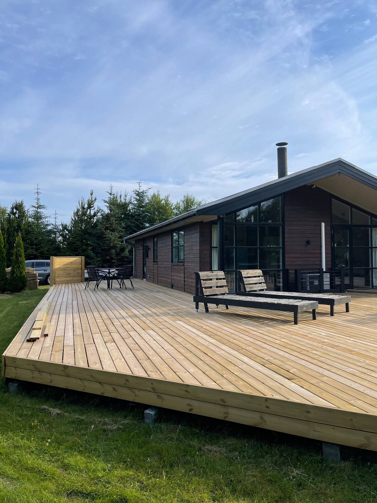 Aquí encontrarás paz, relajación y mucho aire fresco. La casa está situada en el campo, rodeada de una naturaleza preciosa, que invita a pasear y a disfrutar de momentos tranquilos con un buen libro. Si la familia también incluye un perro, entonces hay mucho espacio para todos ustedes. La casa está rodeada por un gran jardín y césped, así como terrazas en varios lados. En el bosque cerca de la casa hemos construido un refugio. El refugio se puede utilizar para un breve descanso o para pasar la noche en la naturaleza.