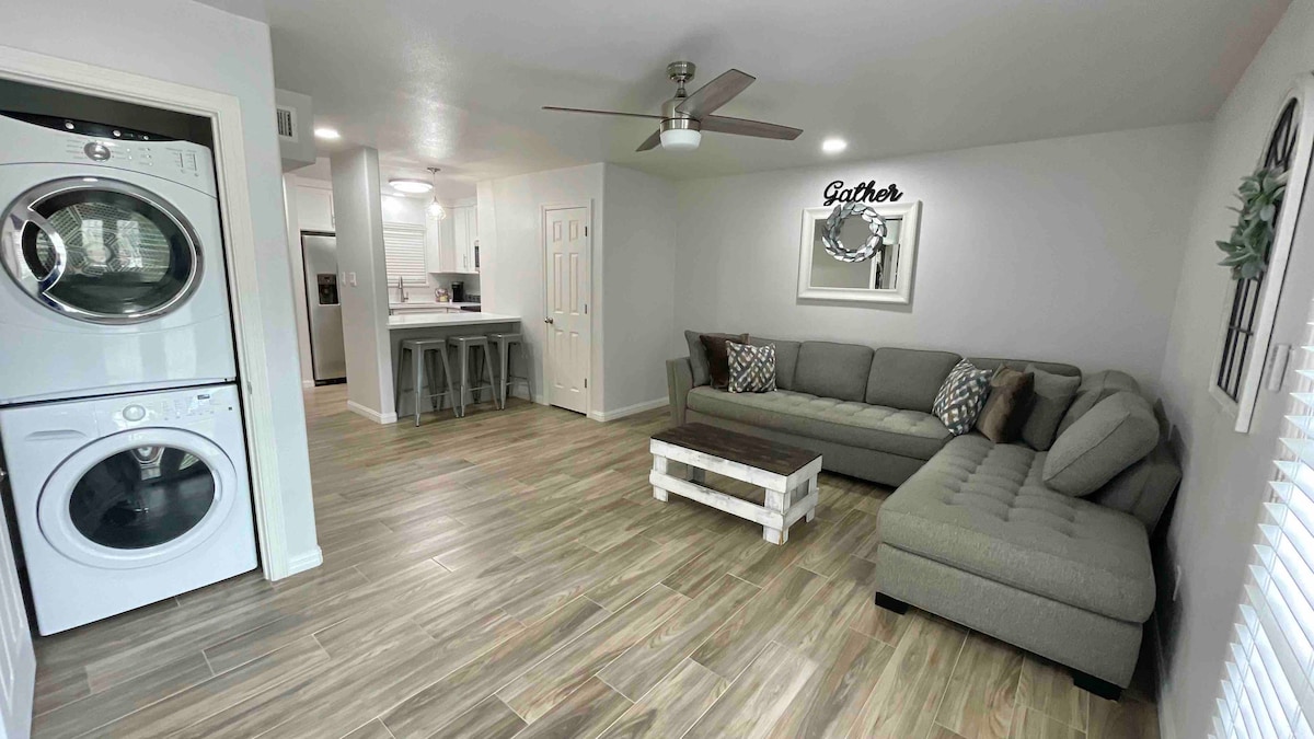 Disfruta de comodidad en este hermoso townhouse en una comunidad de golf. Cuenta con 2 habitaciones, con opciones adicionales para dormir, 2 colchones de aire queen, sofá y Wi-Fi. Tiene 3 Smart TVs con acceso a Netflix, Hulu y Prime. Arriba, una cama queen, una doble, baño con ducha y closet amplio. Abajo, sala acogedora, cocina equipada, 1/2 baño y lavadora/secadora. Los huéspedes pueden usar la piscina y gimnasio comunitarios.