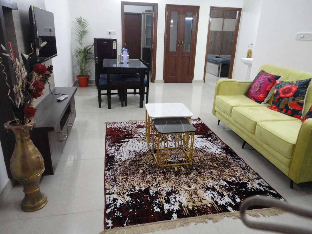 ¡Te damos la bienvenida a nuestro apartamento Lakeview! Experimenta la comodidad moderna en el entorno sereno de Bangalore. Relájate en nuestro acogedor apartamento de 2 dormitorios con aire acondicionado (en un dormitorio). Disfruta de una transmisión fluida con wifi de 100 Mbps. Disfruta de la comodidad de tener aparcamiento gratuito disponible dentro de las instalaciones, lo que hará que tus desplazamientos sean muy sencillos. Disfruta de té y café de cortesía y descansa en colchones premium con sábanas de calidad. Se proporcionan champú y gel corporal para una estancia sin preocupaciones. ¡Disfruta de la comodidad y la conveniencia en su máximo esplendor!