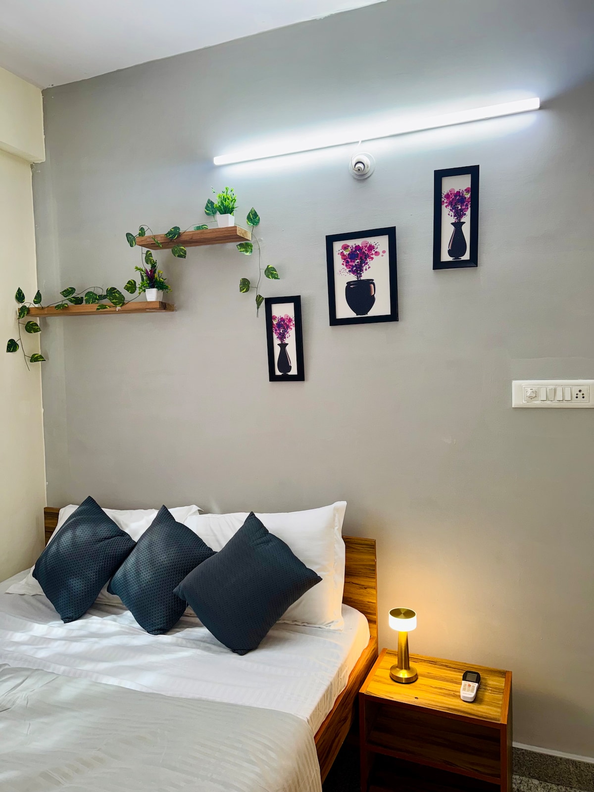 Chic Haven - acogedor 1BHK con balcón, wifi y Netflix gratis, Amazon Prime Video y Disney+ Hotstar Bienvenido a tu elegante hogar lejos de casa en el corazón de HSR Layout, sector 1, ¡el vibrante centro de startups y estilo de vida de Bangalore! Nuestro encantador apartamento de un dormitorio es un santuario urbano diseñado para viajeros solos, parejas o profesionales de negocios que buscan comodidad, conveniencia y un toque de sabor local.