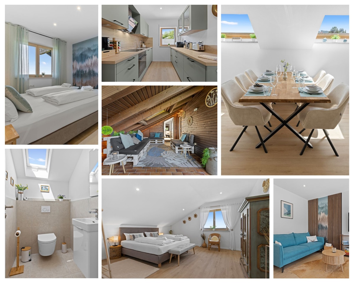 Welcome to the Allgäu! Spring is on its way. Come enjoy a taste of paradise. Step into 120 m² of calm, light-filled comfort - a stylish retreat designed for rest, warmth and peace. Our luxury apartment blends modern elegance with alpine charm, creating a space where you can truly exhale. 2 bedrooms, 2 full bathrooms, free-standing tub, cozy sauna, chef-equipped kitchen, balcony, breathtaking views. We’ve thoughtfully stocked the space with everything you need to feel completely at home.