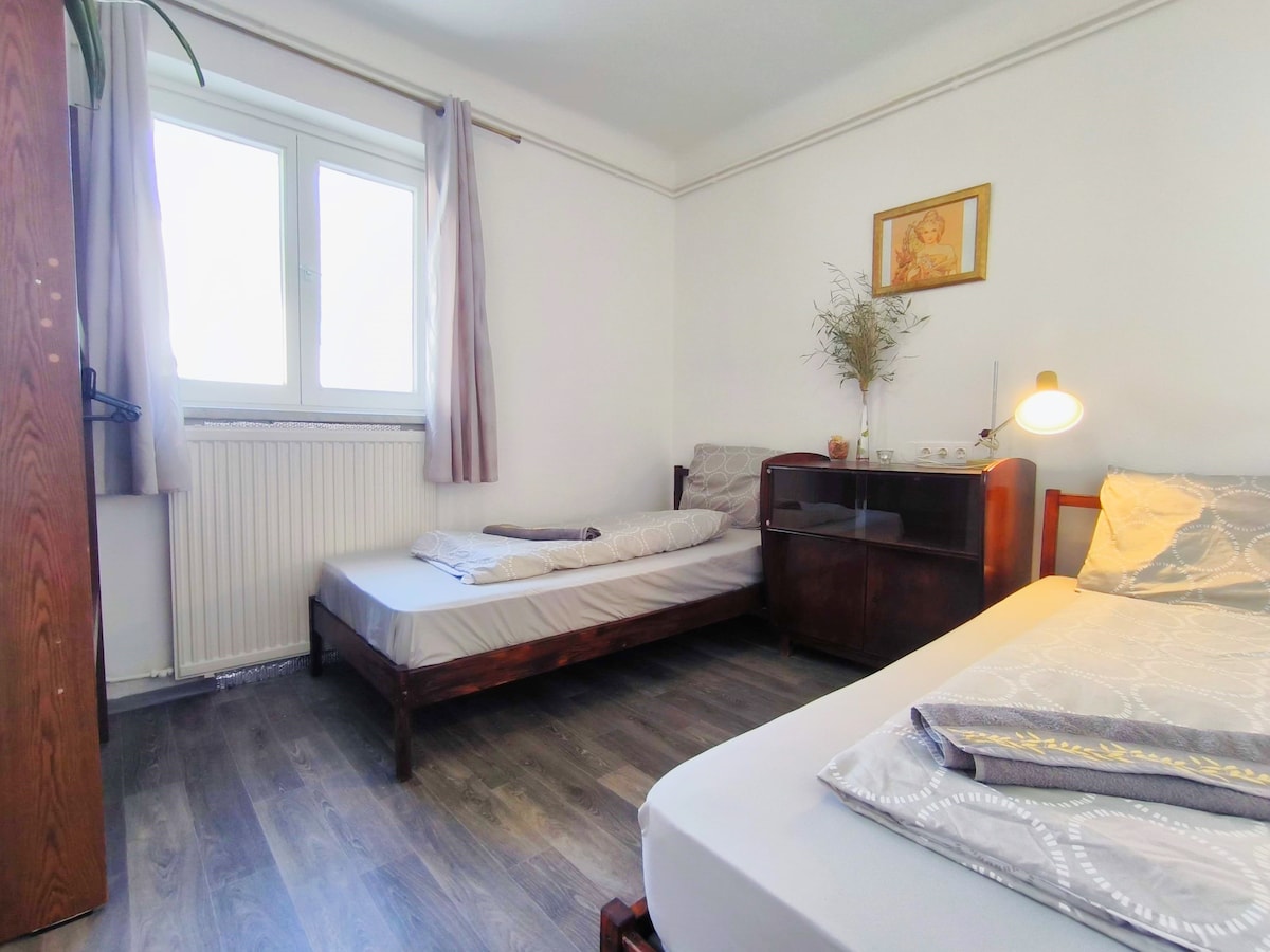 Acogedor, 1 dormitorio + salón (que se puede convertir en un segundo dormitorio, ambos con una cama de 140X200 cm), con entrada independiente a la casa principal. Es ideal para parejas, una familia con hijos o para un grupo de hasta 4 amigos si quieres un entorno tranquilo después del ruido del centro de la ciudad. Se tarda entre 20 y 30 minutos en llegar al centro de la ciudad de Budapest en autobús y metro o en coche. En el salón hay un ventilador de techo, en el dormitorio hay un ventilador de pie disponible.