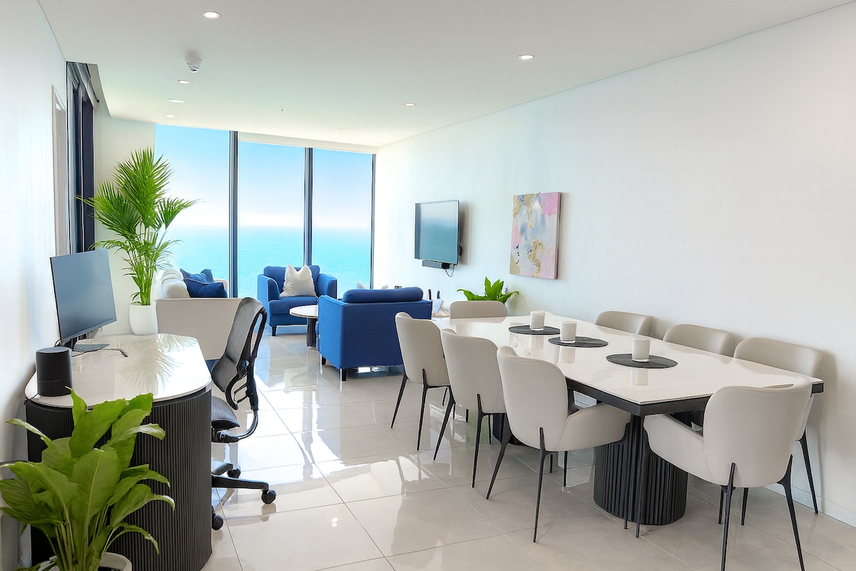 🌊 Escapada de lujo frente al mar — Meriton Suites Surfers Paradise Te damos la bienvenida a tu lujosa residencia dentro del prestigioso Meriton Suites Surfers Paradise, un hotel de 5 estrellas frente a la playa en la mundialmente famosa Gold Coast. Ubicado con elegancia en la planta 39, nuestro exquisito apartamento ofrece impresionantes vistas panorámicas del océano Pacífico y del vibrante horizonte de la ciudad Mantente conectado sin problemas con el wifi ultrarrápido de 500 Mbps, ideal para trabajar, ver vídeos en streaming o simplemente estar en contacto mientras te relajas con estilo.