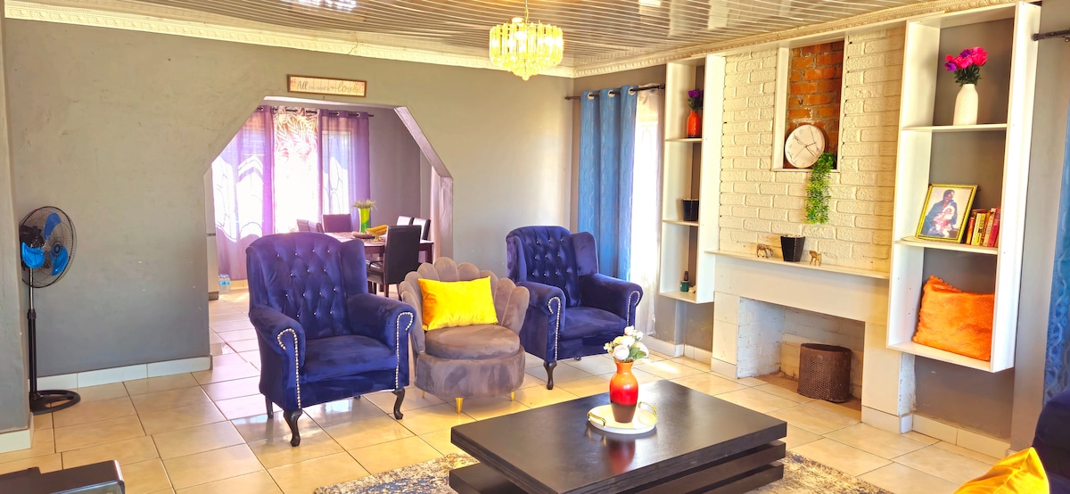 Cozy 4-bedroom home in a quiet Bulawayo neighborhood, just 15 minutes from city noise. Enjoy free Wi-Fi, Smart TVs, solar power, 24/7 borehole water, a full kitchen, spacious yard. With a huge outdoor entertainment area. Only 5 minutes from Nkulumani Mall—ideal for families, groups, business stays, or a relaxing getaway.