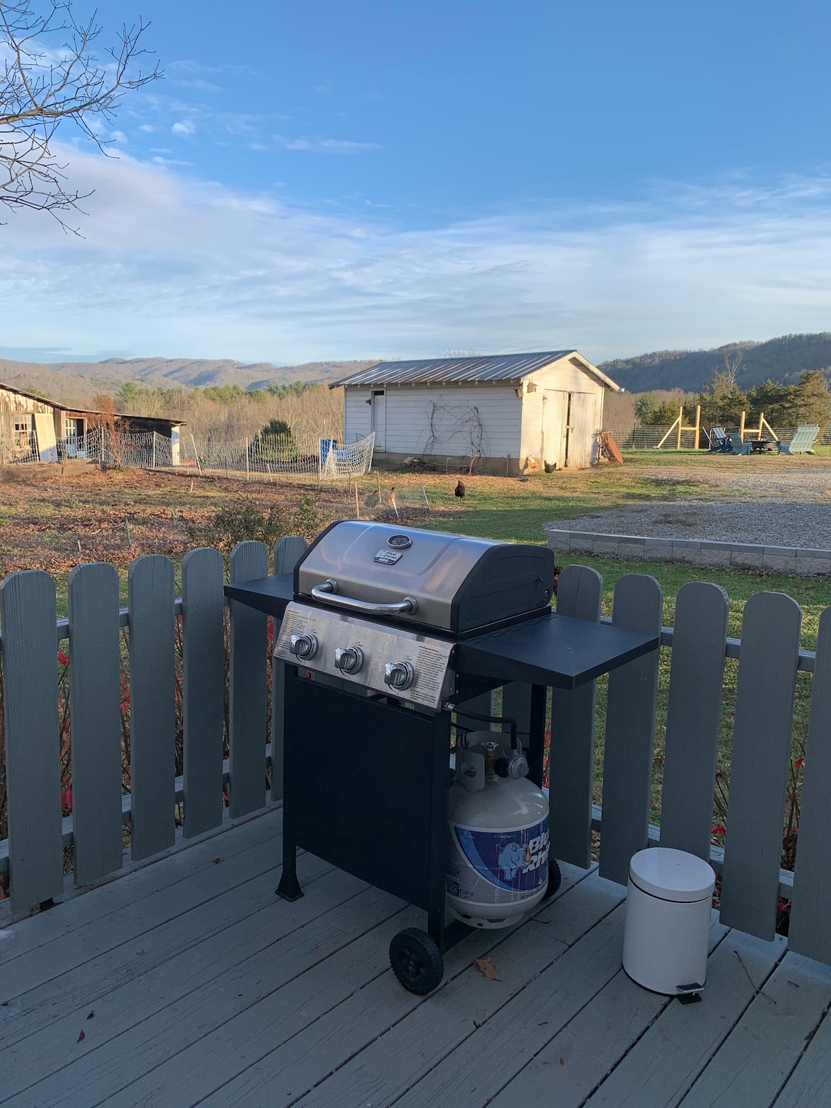 Empieza el día con un hermoso amanecer sobre el río, respirando aire fresco de montaña y escuchando el rugido del río. ¡Tienes acceso a nuestra pintoresca granja, así que pasa la mañana haciendo senderismo, pescando y conociendo a los animales! Con solo un rápido viaje en coche, puedes aventurarte a las ciudades circundantes para experimentar la cultura de WNC antes de regresar a tu santuario privado y tranquilo. Relájate por la noche con vino Biltmore o algunas cervezas artesanales locales. ¡También está totalmente equipado para los cachorros!