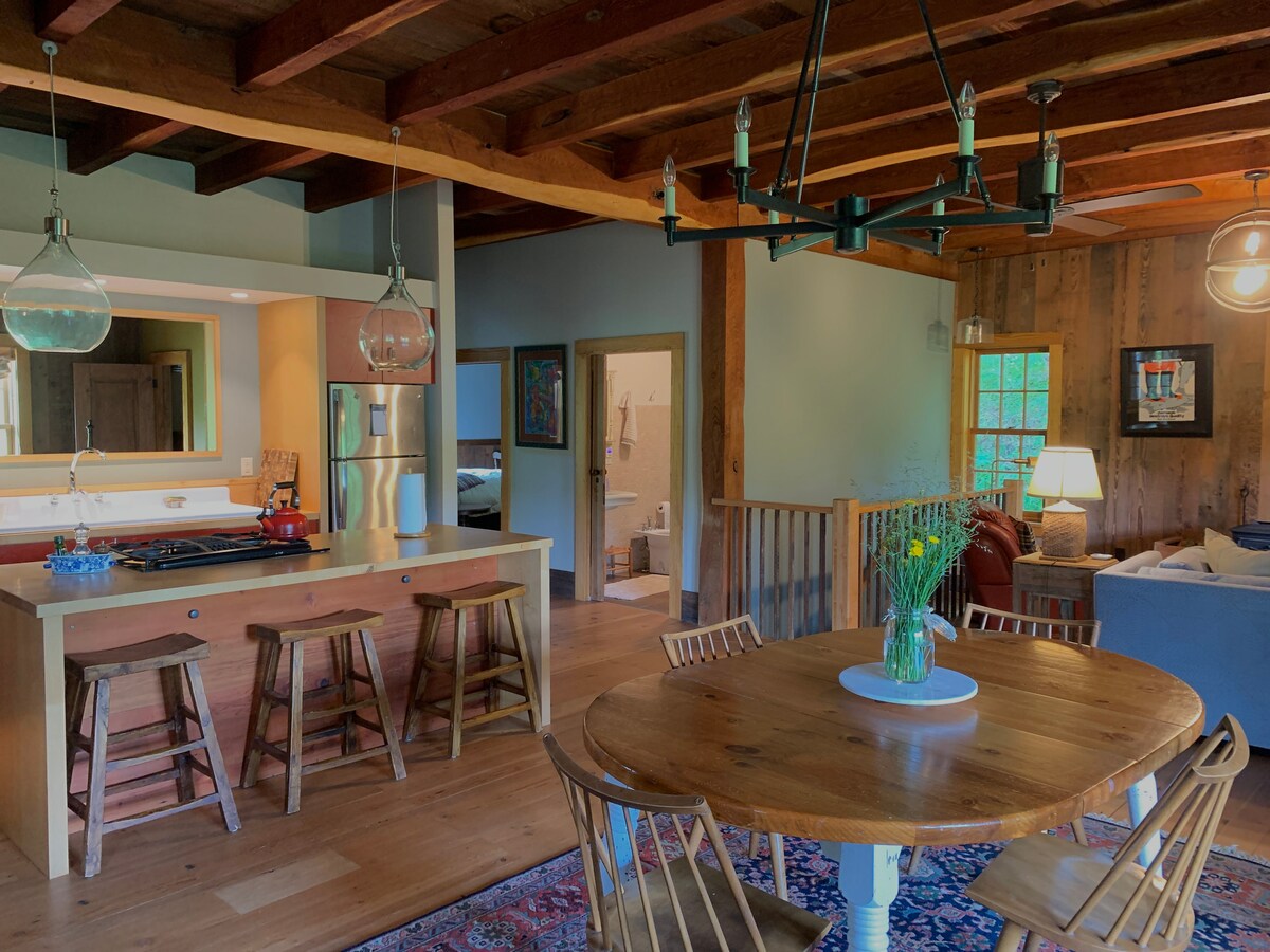 Empieza el día con un hermoso amanecer sobre el río, respirando aire fresco de montaña y escuchando el rugido del río. ¡Tienes acceso a nuestra pintoresca granja, así que pasa la mañana haciendo senderismo, pescando y conociendo a los animales! Con solo un rápido viaje en coche, puedes aventurarte a las ciudades circundantes para experimentar la cultura de WNC antes de regresar a tu santuario privado y tranquilo. Relájate por la noche con vino Biltmore o algunas cervezas artesanales locales. ¡También está totalmente equipado para los cachorros!