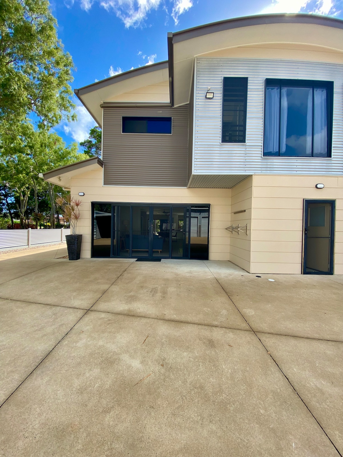 Alojamiento espacioso, luminoso y moderno, zona rural tranquila a solo 10 minutos de Bundaberg. A 20 minutos de la playa. La planta baja es independiente con cocina propia, dormitorio principal con cama doble, gran sala de estar con dos camas individuales, TV con acceso a Netflix, wifi, libros y juegos de mesa. Harry y Philippa viven en el lugar, junto con dos perros, dos gatos, un caballo llamado Jubilee, 5 ovejas, gallinas y una bandada de pintadas que van y vienen.